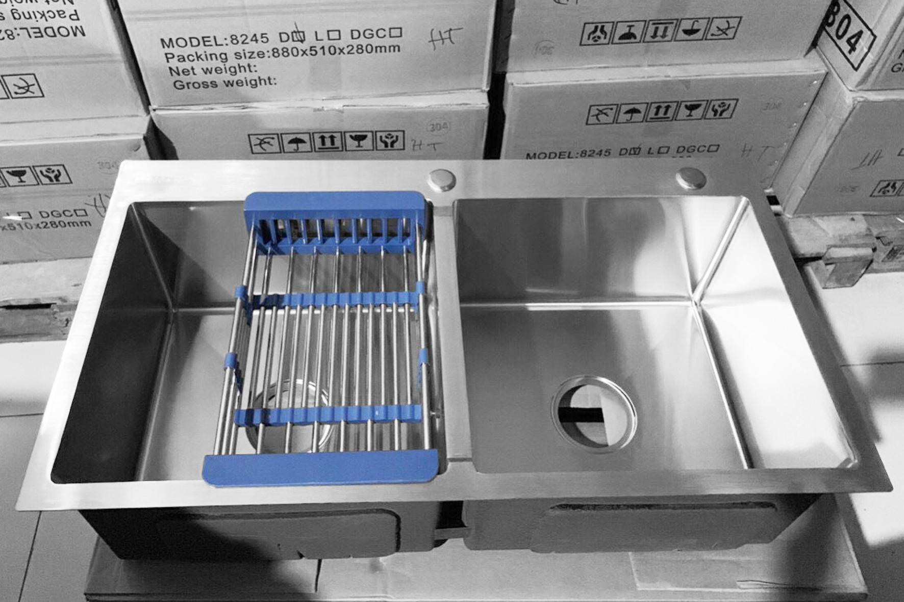 Chậu Rửa Chén Bát Inox Dập Nhiều Kích Thước - Chất liệu: lựa chọn, inox 201 hoặc inox 304 - Kiểu chậu dập, bo góc, inox dày 0.4li - Phù hợp phân khúc khách “bình