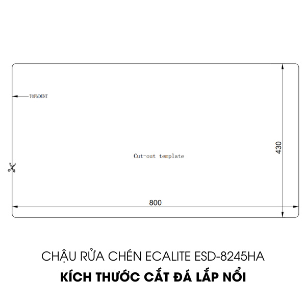 Kích thước: 820 x 450 x 230mm Khoét lỗ: 800 x 430mm