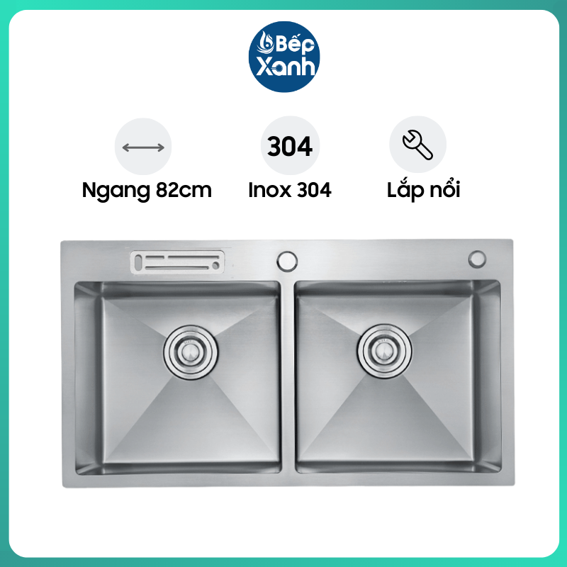 Kích thước: 820x450x230mm Khoét lỗ: 800x430mm Chất liệu: Inox 304