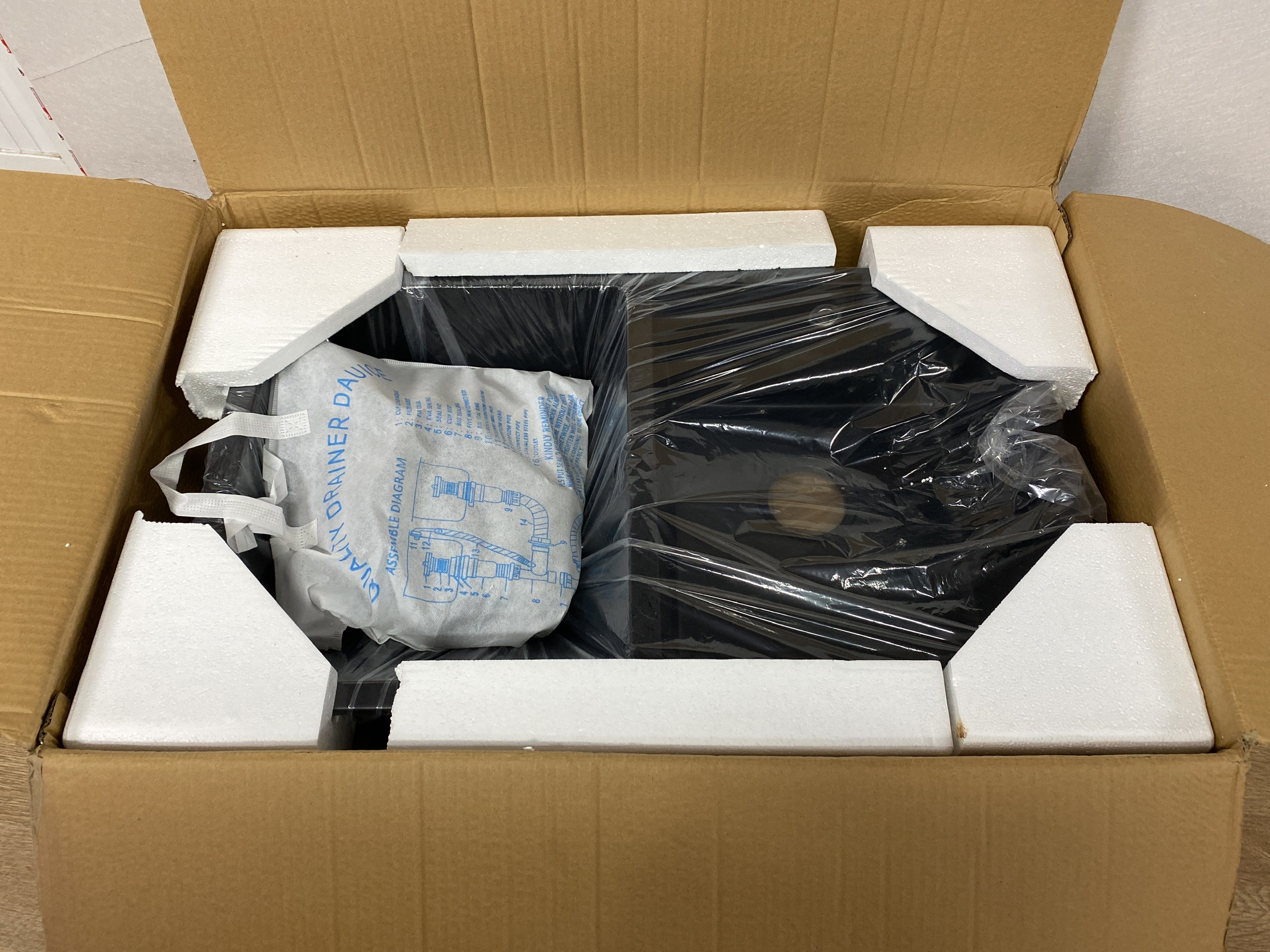 Chất liệu: Đá Granite Màu sắc: Đen, trắng, vàng kem, xám Độ sâu bồn: 215 mm Kích thước: 810D*480R mm Phụ kiện: 1 bộ tiêu chuẩn túi PE Foam (kèm siphon), bộ xả tràn