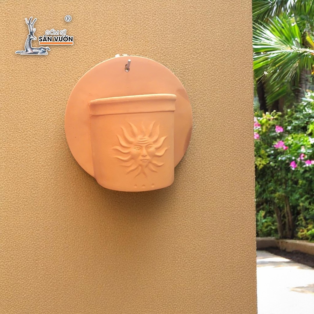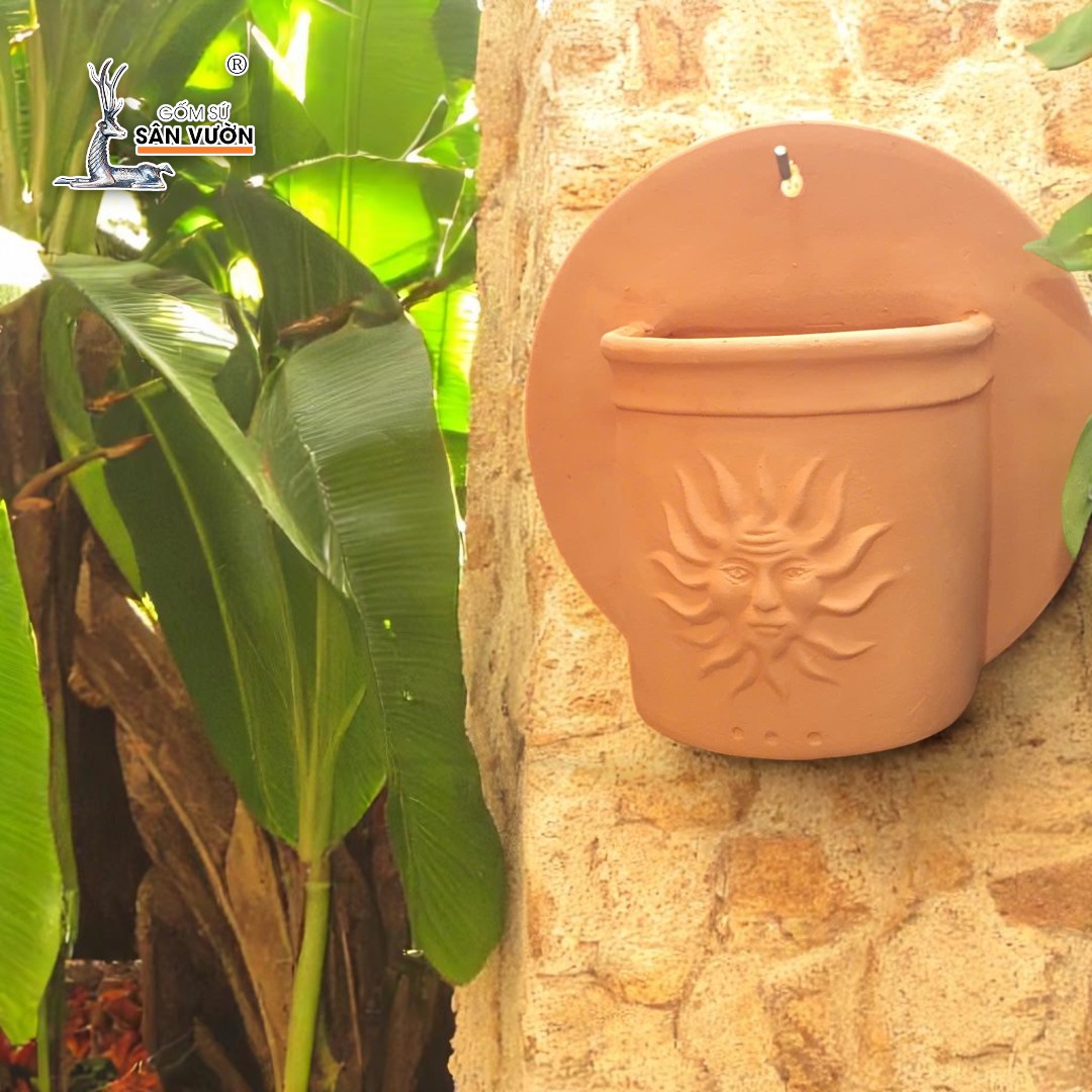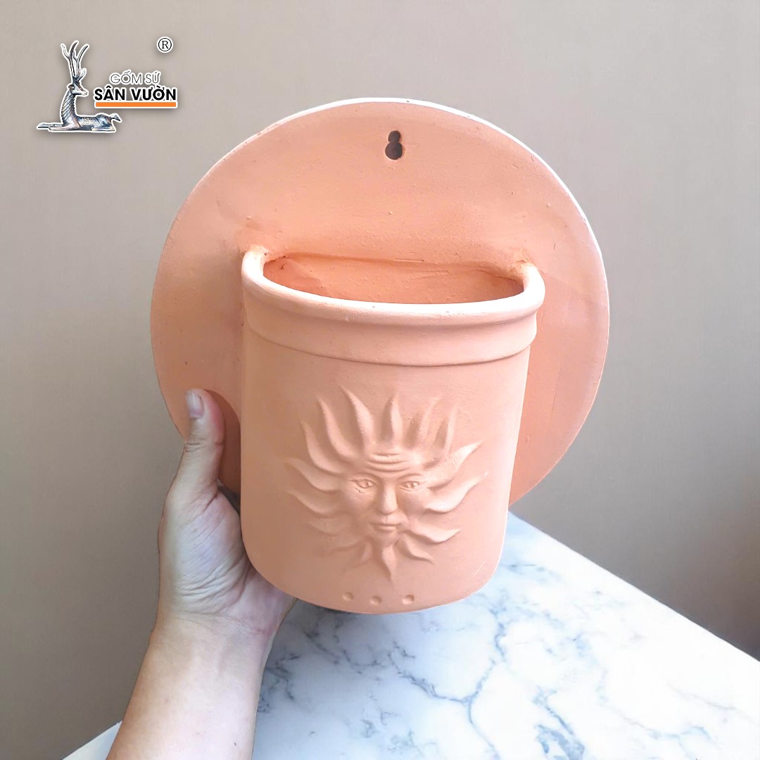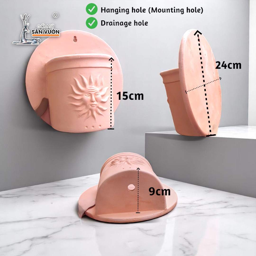 ✨Chậu Treo Tường Đất Nung Hoa Văn Mặt Trời | Trang Trí Ban Công Treo Tường | Style Rustic | 24×24×15cm