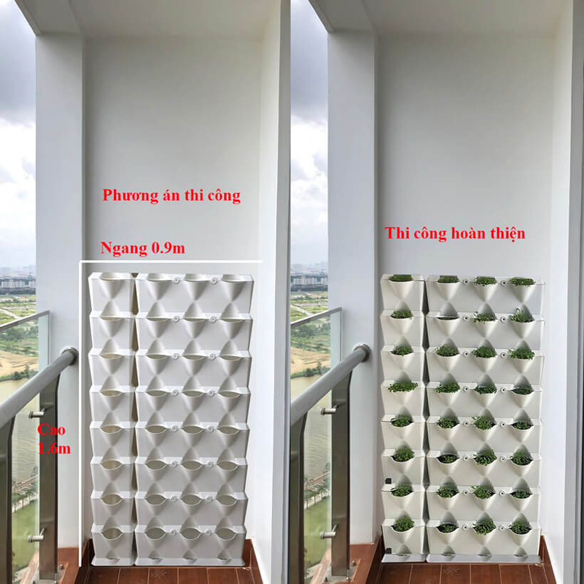 8. Chậu Trồng Cây Đứng, Rau Đứng bạn có thể lắp đặt tại nhà. Không cần chống thấm tường. Không cần khung sắt và với 1m2 khung trồng rau có thể tự đứng một mình