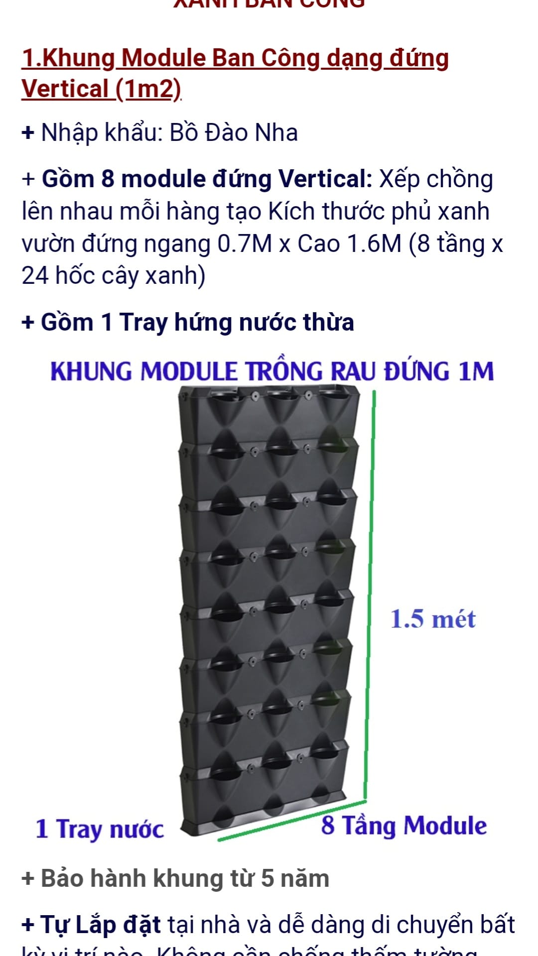 CHẬU KHUNG MODULE VƯỜN CÂY ĐỨNG BỒ ĐÀO NHA TỰ LẮP ĐẶT TẠI NHÀ (1m2) KÈM GIẢI PHÁP TƯỚI NHỎ GIỌT BÁN TỰ ĐỘNG TẠI KHU VƯC CÂY XANH BAN CÔNG KHÔNG CÓ VÒI CẤP
