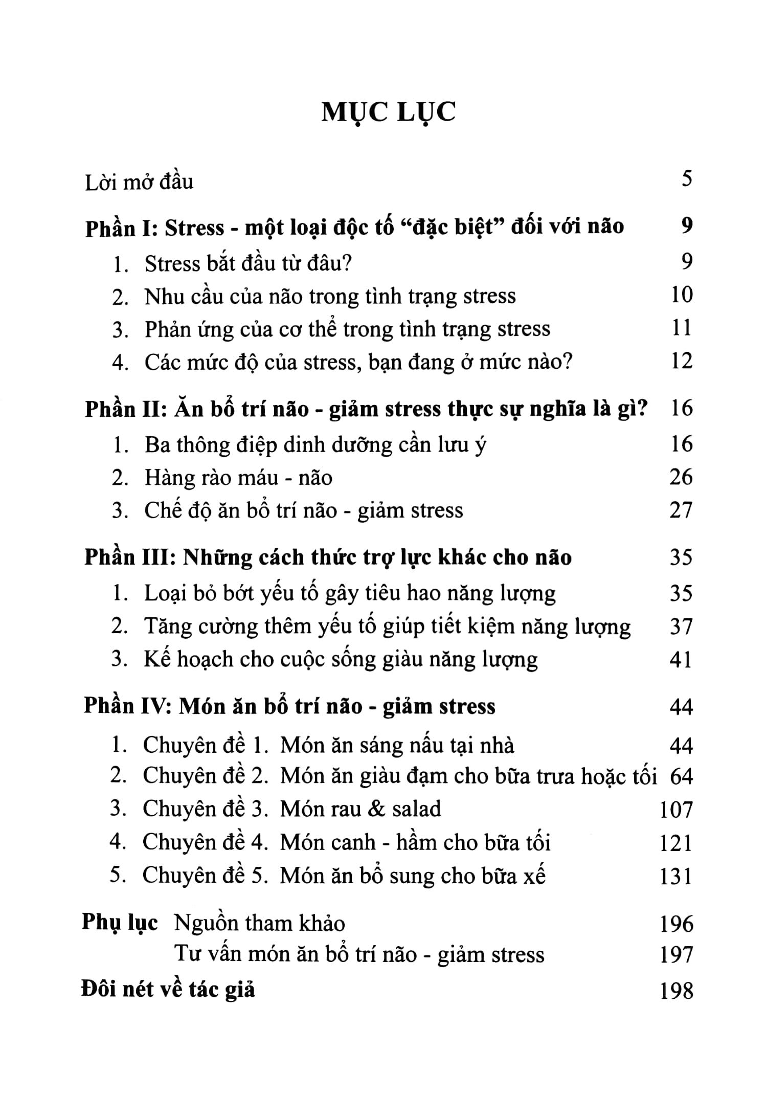 Cuốn sách này sẽ tư vấn cho bạn những cách thức nuôi dưỡng trí não, nhất là trong tình trạng stress, lần lượt theo 6 bước sau đây: