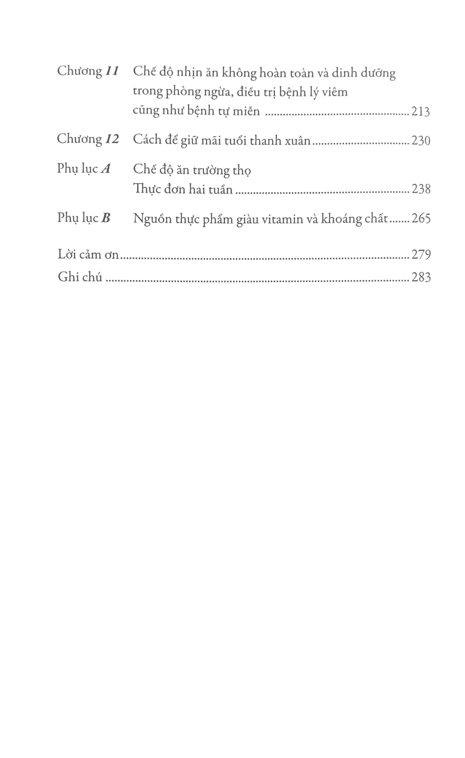 Trong cuốn sách này, Valter Longo đề cập trực tiếp và đầy đủ về cách áp dụng Chế độ ăn Trường thọ và FMD trong việc ch ữa t rị bệnh ung thư, tiểu đường, bệnh tim mạch, các bệnh thoái hóa thần kinh, bệnh lý viêm và bệnh tự miễn.