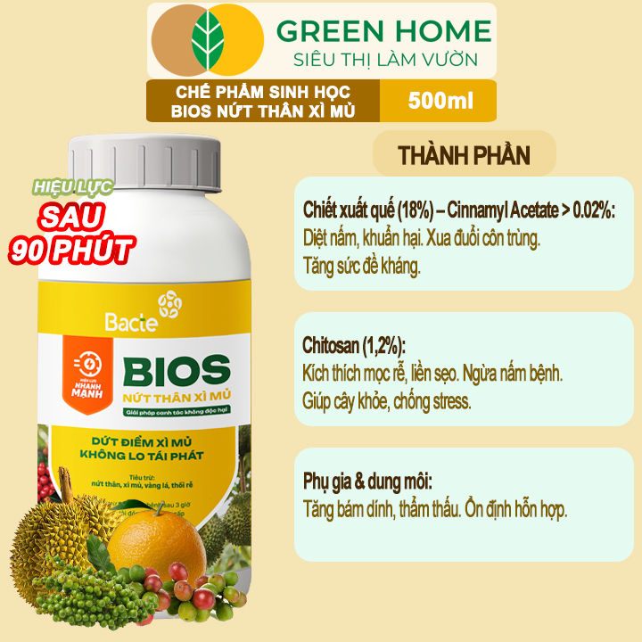 ✨Chế Phẩm Sinh Học Bacte Bios Nứt Thân Xì Mủ, Green Home, Chai 500ml, Từ Thảo Mộc Hiệu Lực Nhanh Mạnh