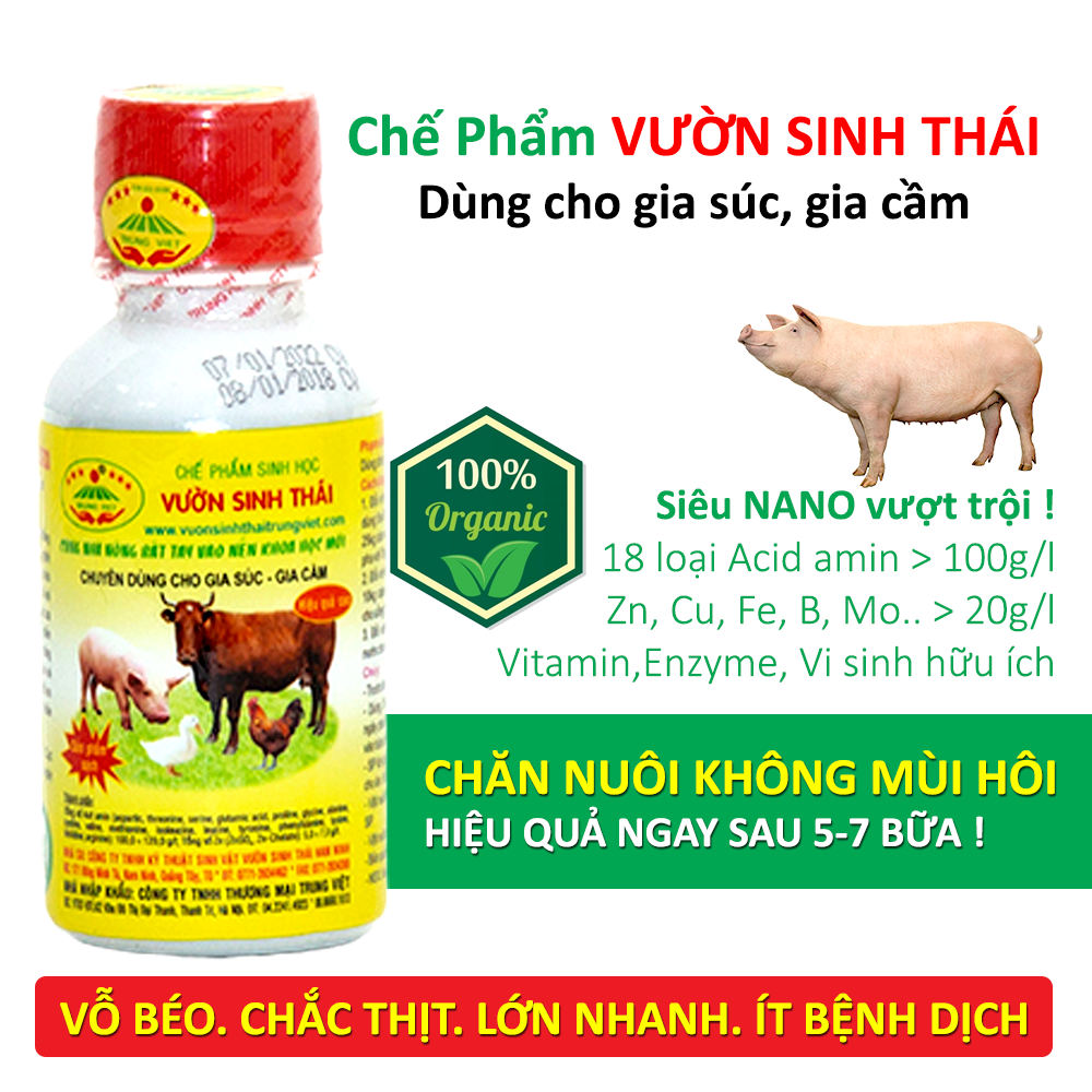 - Chế phẩm sinh học VƯỜN SINH THÁI chính là 1 trong số những dòng chế phẩm được Bộ NN & PTNT VN, cũng như các chuyên gia nông nghiệp đầu nghành như Giáo sư TS Nguyễn Lân Dũng, Nguyễn Lân Hùng khuyến khích bà con áp dụng trong những năm qua. CHẾ PHẨM VƯỜN SINH THÁI DÙNG CHO CHĂN NUÔI LÀ GÌ ?