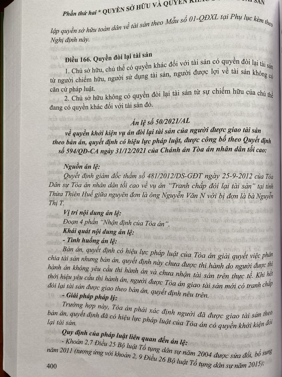 Ngày 25-02-2020, Tòa án nhân dân tối cao ban hành Quyết định số 50/QĐ-CA về việc công bố án lệ với những vụ việc thường gặp trên thực tế. Theo đó, các án lệ được ban hành