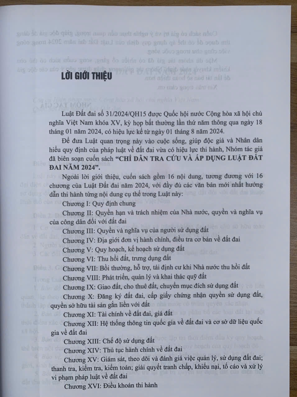 Để đưa Luật quan trọng này vào cuộc sống, giúp độc giả và Nhân dân hiểu quy định của pháp luật về đất đai vừa có hiệu lực thi hành, Nhóm tác giả đã biên soạn cuốn sách “CHỈ DẪN TRA CỨU VÀ ÁP DỤNG LUẬT ĐẤT ĐẠI NĂM 2024”.
