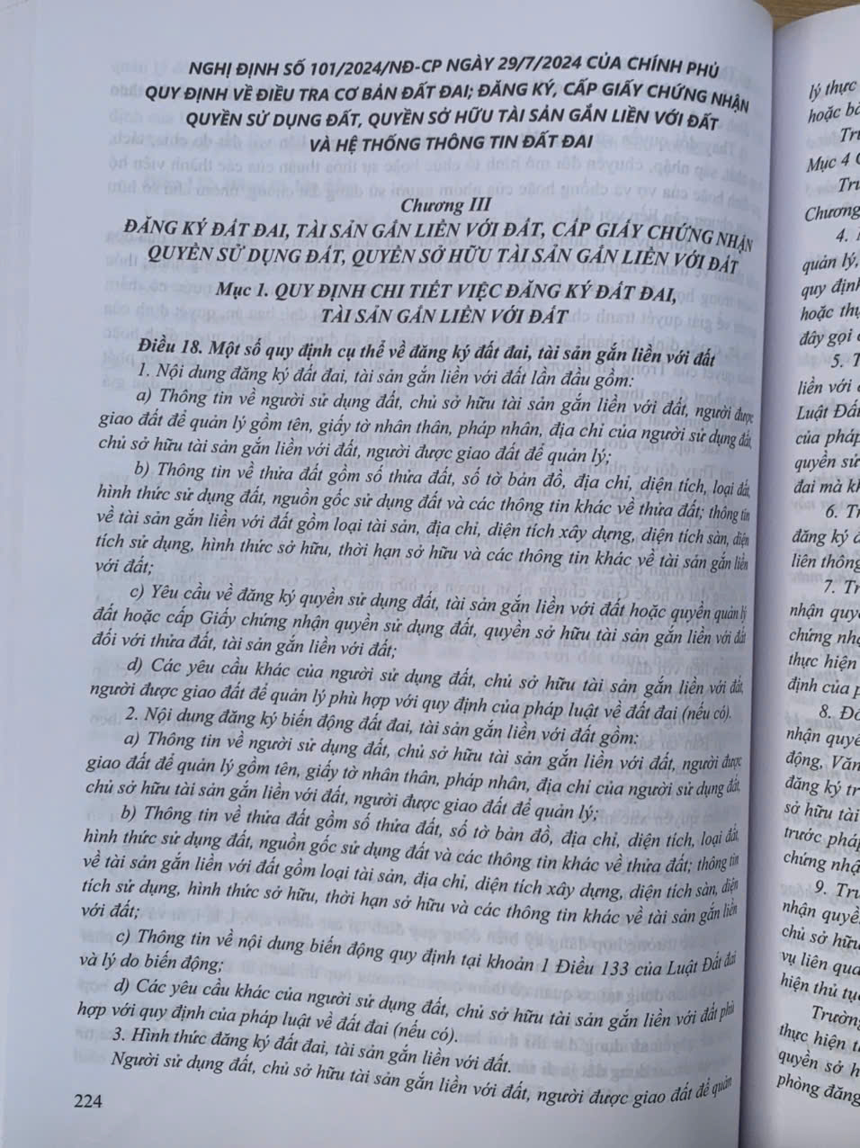 Ngày 18/01/2024, Quốc hội nước Cộng hòa xã hội chủ nghĩa Việt Nam thông qua Luật Đất đai số 31/2024/QH15, đã thể chế hóa đầy đủ, kịp thời các quan điểm, chủ trương của Đảng