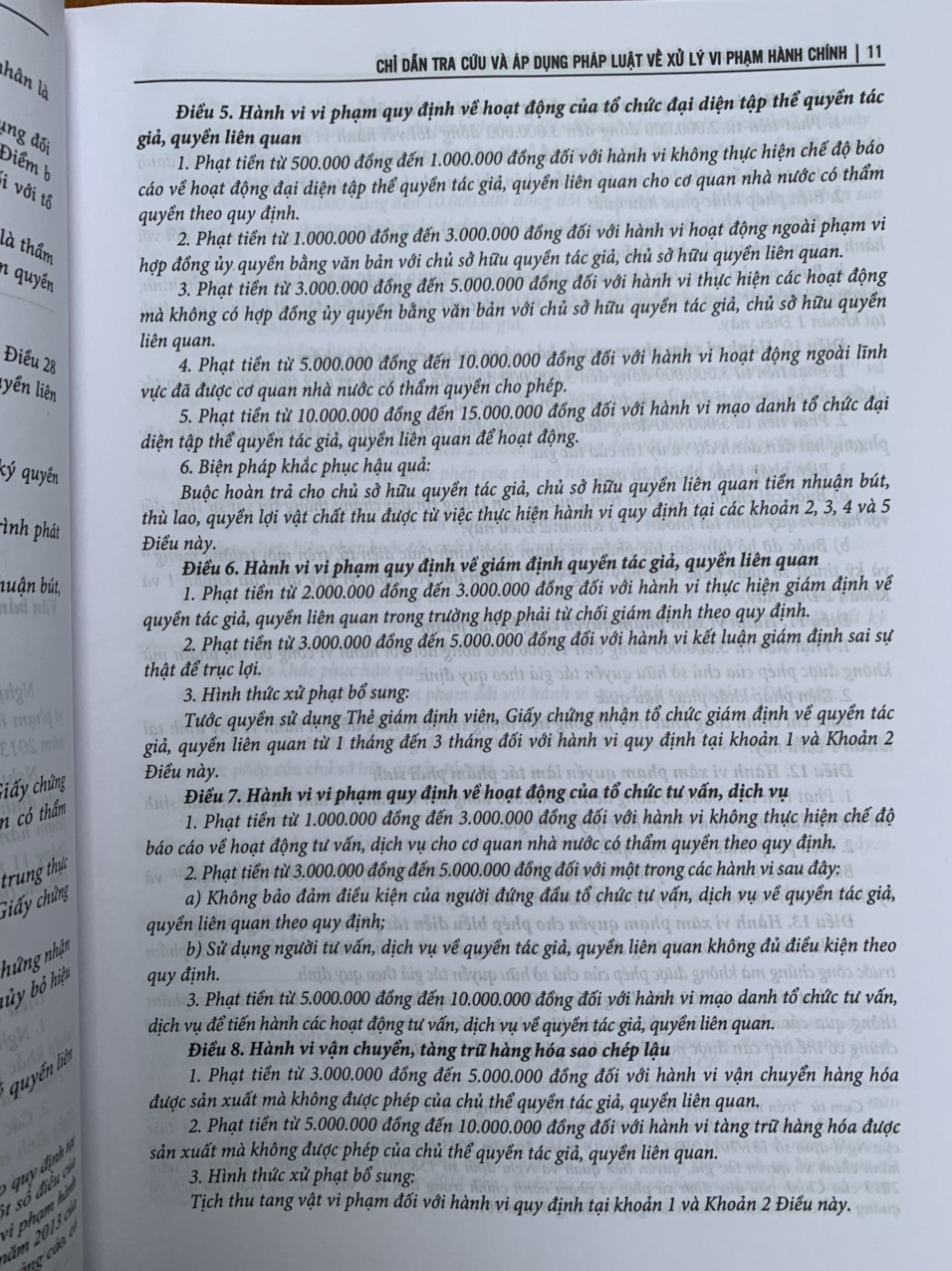Để tiện tra cứu và áp dụng pháp luật về xử lý vi phạm hành chính, nhóm tác giả đã biên soạn bộ sách “Chỉ dẫn tra cứu và áp dụng pháp luật về xử lý vi phạm hành chính (được sửa đổi, bổ sung năm 2020)”, ngoài lời giới thiệu, danh mục văn bản chỉ dẫn tra cứu và áp dụng pháp luật về xử lý vi phạm hành chính, bộ sách gồm 02 phần và được chia làm 02 quyển: