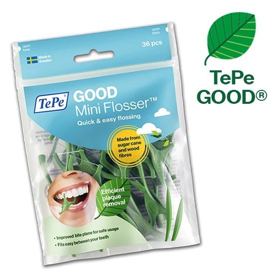 Chỉ nha khoa của Tepe giúp lấy đi thức ăn thừa, loại bỏ vi khuẩn bám trong kẽ răng ở những vị trí mà bàn chải không thể với tới được một cách hiệu quả, giữ cho răng miệng luôn sạch sẽ với hương bạc hà thơm mát.