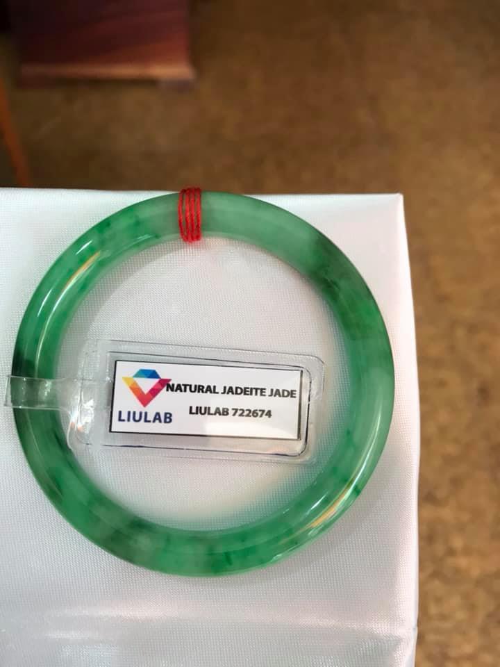 ✨CHIẾC VÒNG NỮ LÝ VÂN A SỊN 49MM KÈM GIẤY KIỂM ĐỊNH LIULAB No 722674 CHẤT LIỆU 100% ĐÁ CẨM THẠCH THIÊN NHIÊN MÀU XANH LÝ VÂN TƯƠI ĐẸP NỮ 45KG-51KG ĐEO SANG TAY Ạ