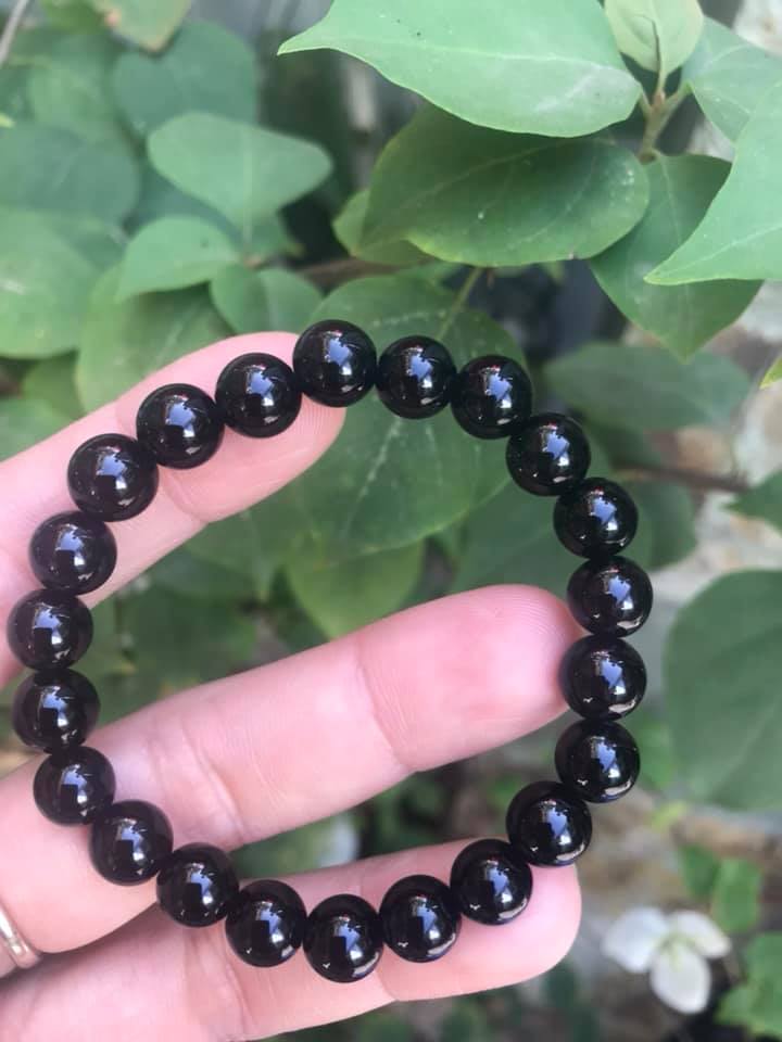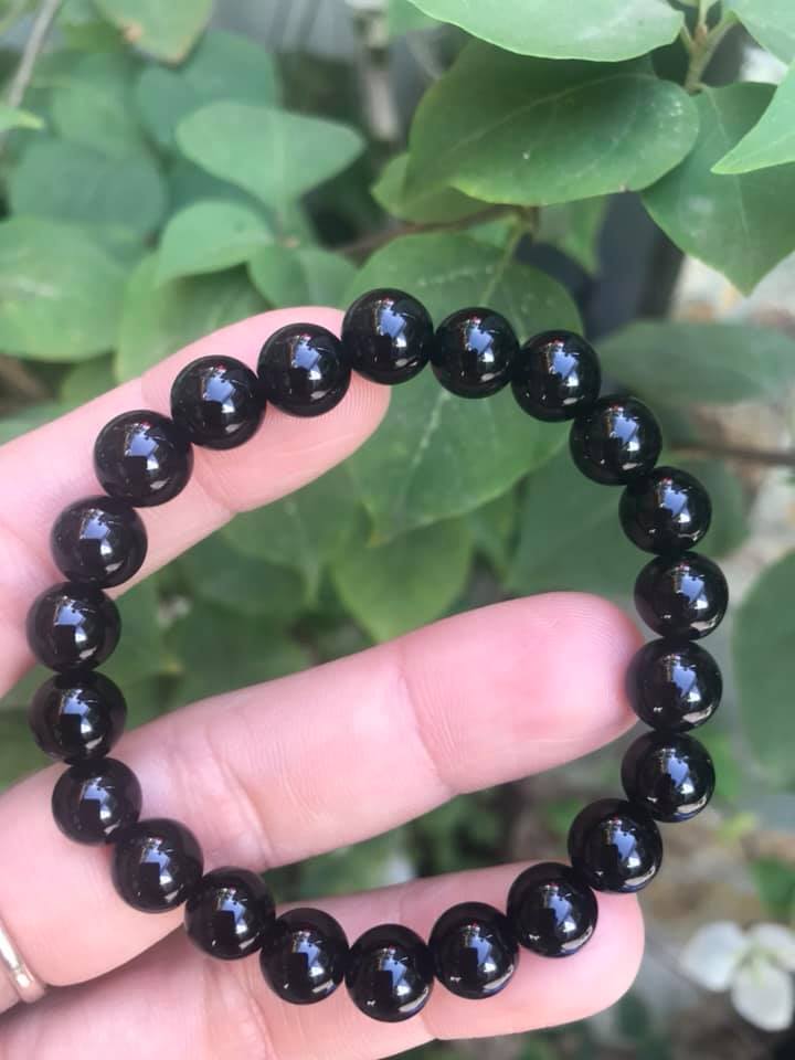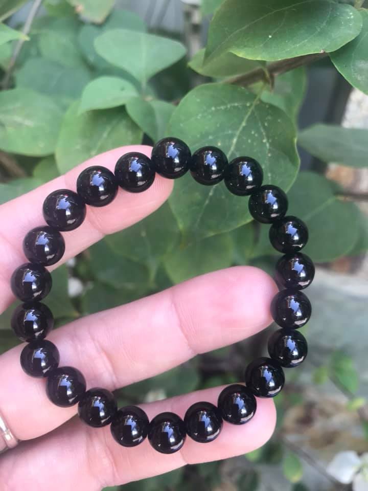 Vòng tay phong thuỷ may mắn đá tourmaline màu bóng đẹp lắm Size hạt vòng 8mm đá tự nhiên Vòng đá tự nhiên đeo tốt sức khoẻ, may mắn, tốt cho công việc đeo lên