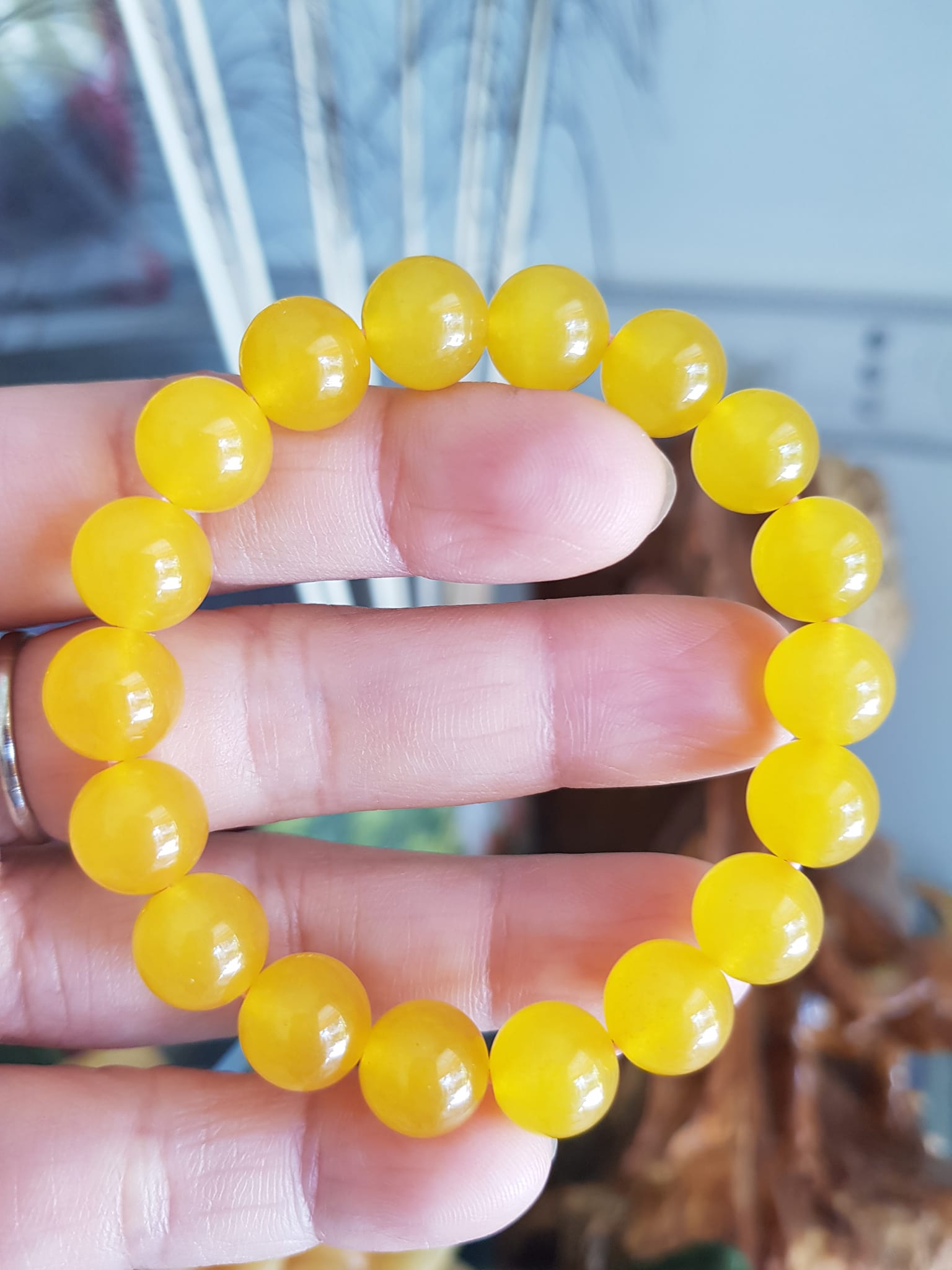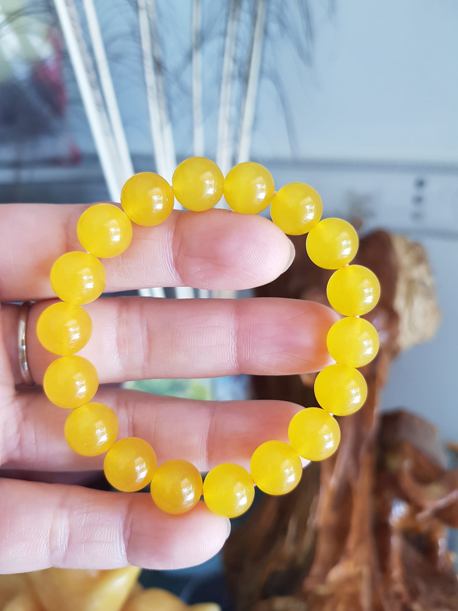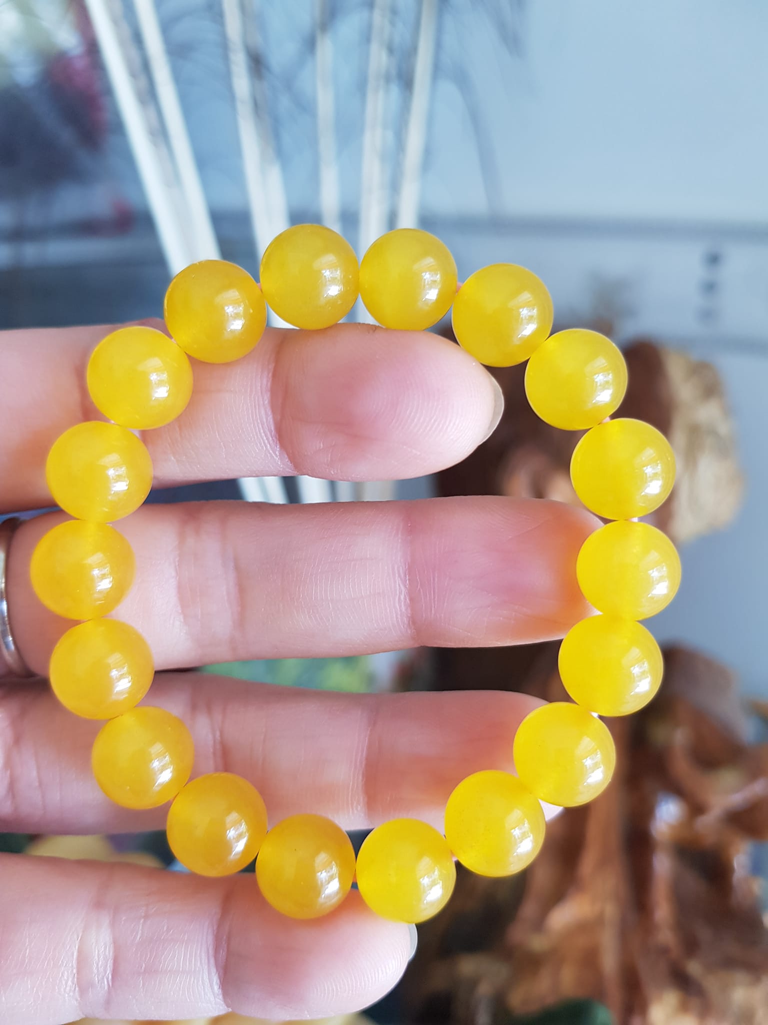 ✨Chiếc Vòng tay đá mã não vàng anh tươi quá đẹp Size hạt 10mm Nữ mệnh kim thổ thủy đeo Vòng vàng anh này người lớn trẻ em nhỏ đeo được hết ạ rất là xinh xắn luôn