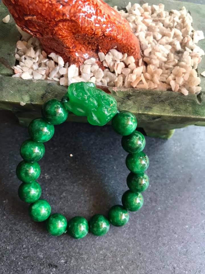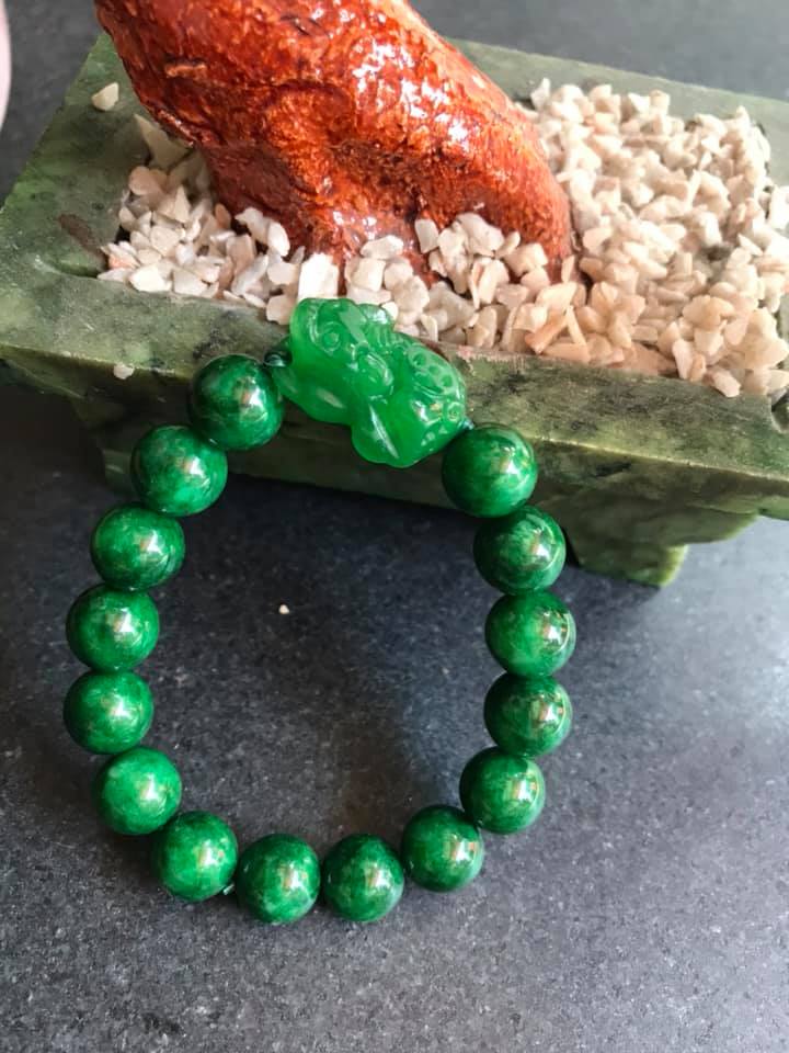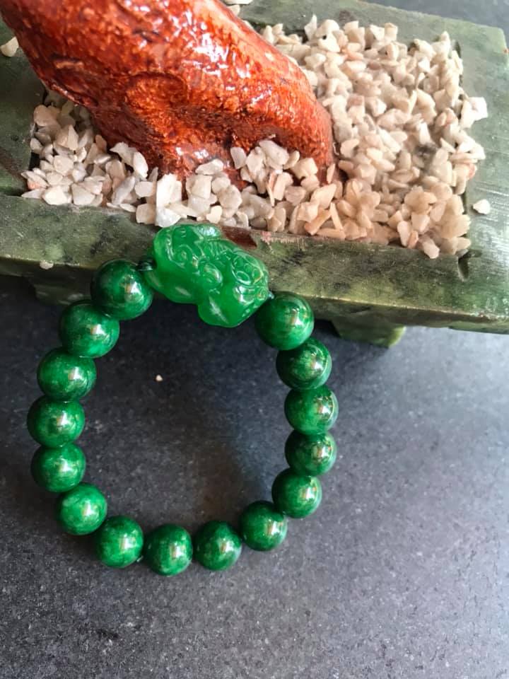 ✨CHIẾC VÒNG TAY TỲ HƯU NỮ ĐÁ CẨM THẠCH MÀU XANH LÁ SIZE 10MM NỮ MỆNH MỘC VÀ HỎA Ạ