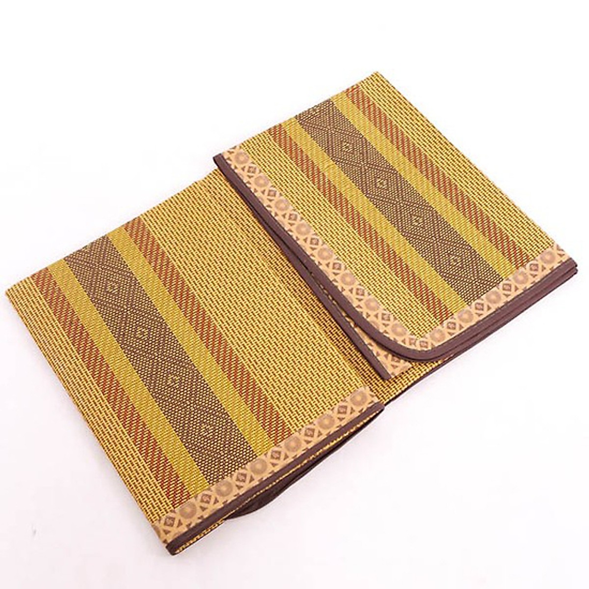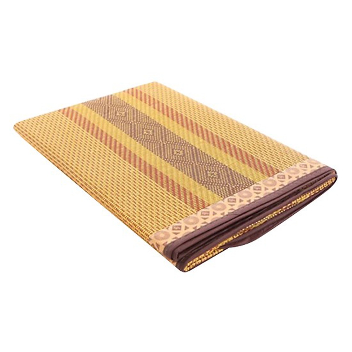 Chiếu điều hòa sợi mây tổng hợp được thiết kế với màu sắc hài hòa (vàng nâu) cùng những đường nét hoa văn đẹp và sang trọng. Chiếu gồm 2 lớp lớp sợi mây tổng