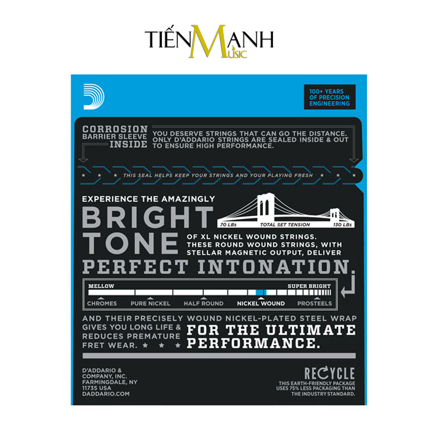 - Bộ 4 Dây Đàn Guitar Bass D'Addario EXL170 được sản xuất bằng thép mạ nickel với tông màu sáng đặc biệt và ngữ điệu xuất sắc. Âm bass thể hiện được hầu hết tất cả các thể