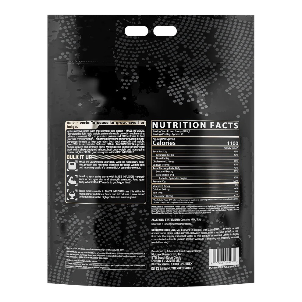 ✨[Chính hãng] Nutrex Mass Infusion (5.4KG) Sữa Tăng Cân Tăng Cơ Nạc, Bổ Sung 50G Protein, 22G EAA, 10G BCAA, 19 Lần Dùng