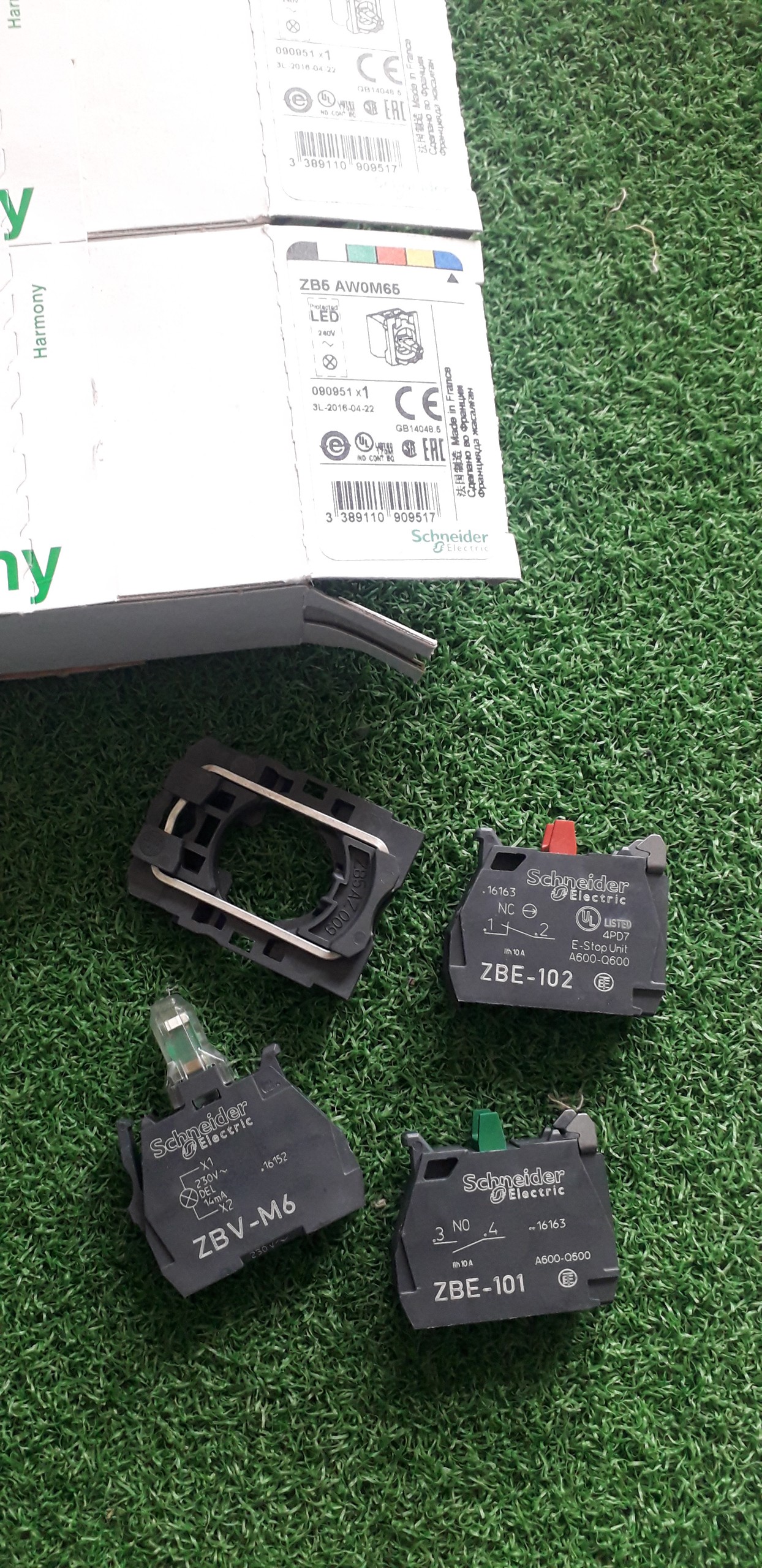 ✨|Chính hãng| Phụ kiện nút nhấn ZB5AW0M65 Schneider, 1NO + 1NC + Đèn màu xanh 220V
