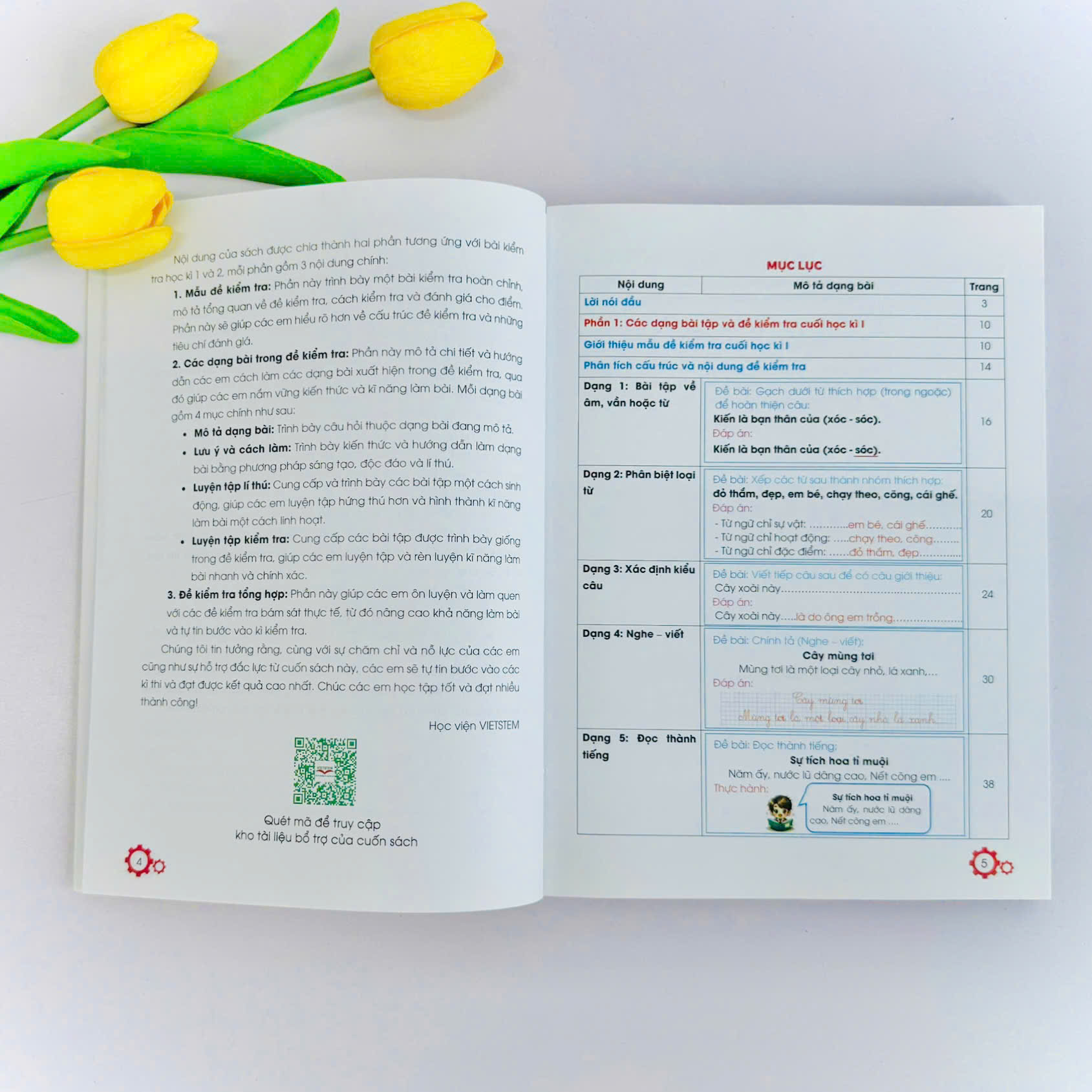 "Chinh Phục Điểm 10 Đề Kiểm Tra Học Kì Tiếng Việt 1" được thiết kế công phu và sáng tạo khiến nó trở thành hơn cả một cuốn sách. Ngoài việc cung cấp kiến thức và phương pháp làm bài độc đáo qua từng trang sách, đặc biệt sách còn tích hợp mã QR cho phép học sinh học qua video một cách rõ ràng và sinh động.