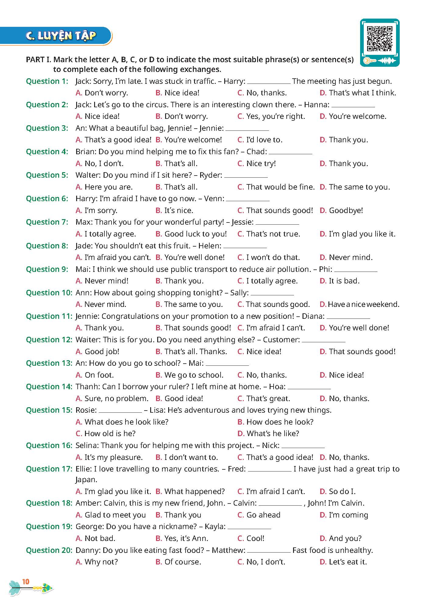 Tập âm thanh MP3 và đáp án