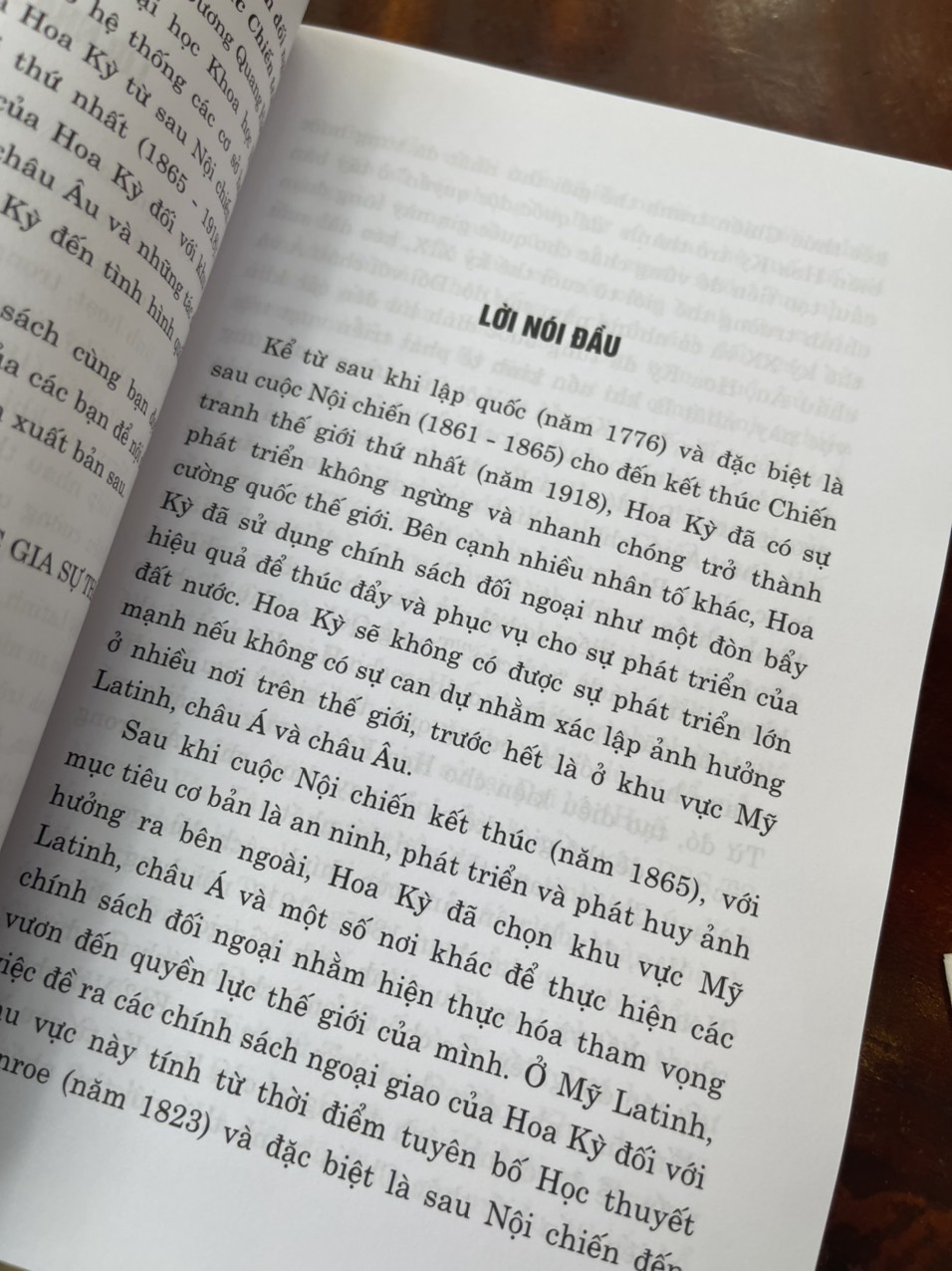 Cuốn sách trình bày một cách có hệ thống các cơ sở hoạch định chính sách đối ngoại của H K.ỳ từ sau N.ộ ế đến kết thúc Cế t.h.ế. gi.ớ thứ nhất (1865 - 1918); nội dung các chính sách đối ngoại của .H K.ỳ đối với khu vực M.ỹ L, một số nước châu Á, châu Âu và những tác động của chính sách đối ngoại của H K.ỳ đến tình hình quốc thế thời kỳ 1865 - 1918.