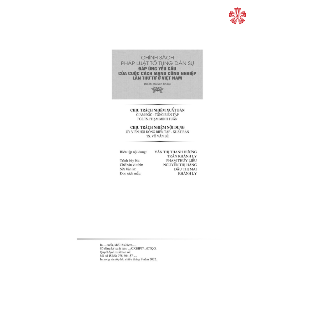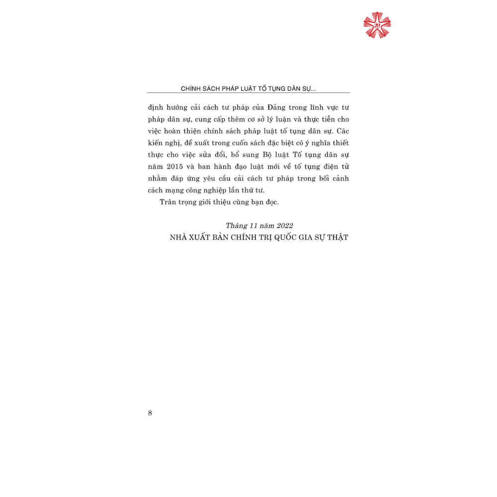 Cuốn sách nghiên cứu một cách tương đối toàn diện và có hệ thống về chính sách pháp luật tố tụng dân sự đáp ứng yêu cầu của cuộc cách mạng công nghiệp lần thứ