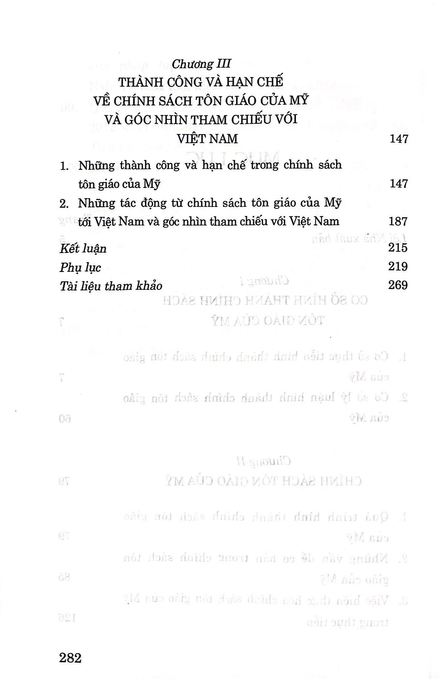 Chính sách tôn giáo của M.ỹ và góc nhìn tham chiếu với Việt Nam của Tiến sĩ Phạm Thanh Hằng. Đây là công trình chuyên khảo được nghiên cứu rất công phu và trình bày một cách khoa học, rõ ràng những vấn đề cơ bản của chính sách tôn giáo của Mỹ. Đặc biệt, tác giả đem đến một “góc nhìn” mới, chỉ ra những thành công và hạn chế trong chính sách tôn giáo của Mỹ và phân tích những tác động đối với Việt Nam; làm sâu sắc hơn quan điểm về công tác tôn giáo của Dảng C.ộ s.ản Việt Nam được đề ra mới nhất trong Văn kiện Đại hội XIII."