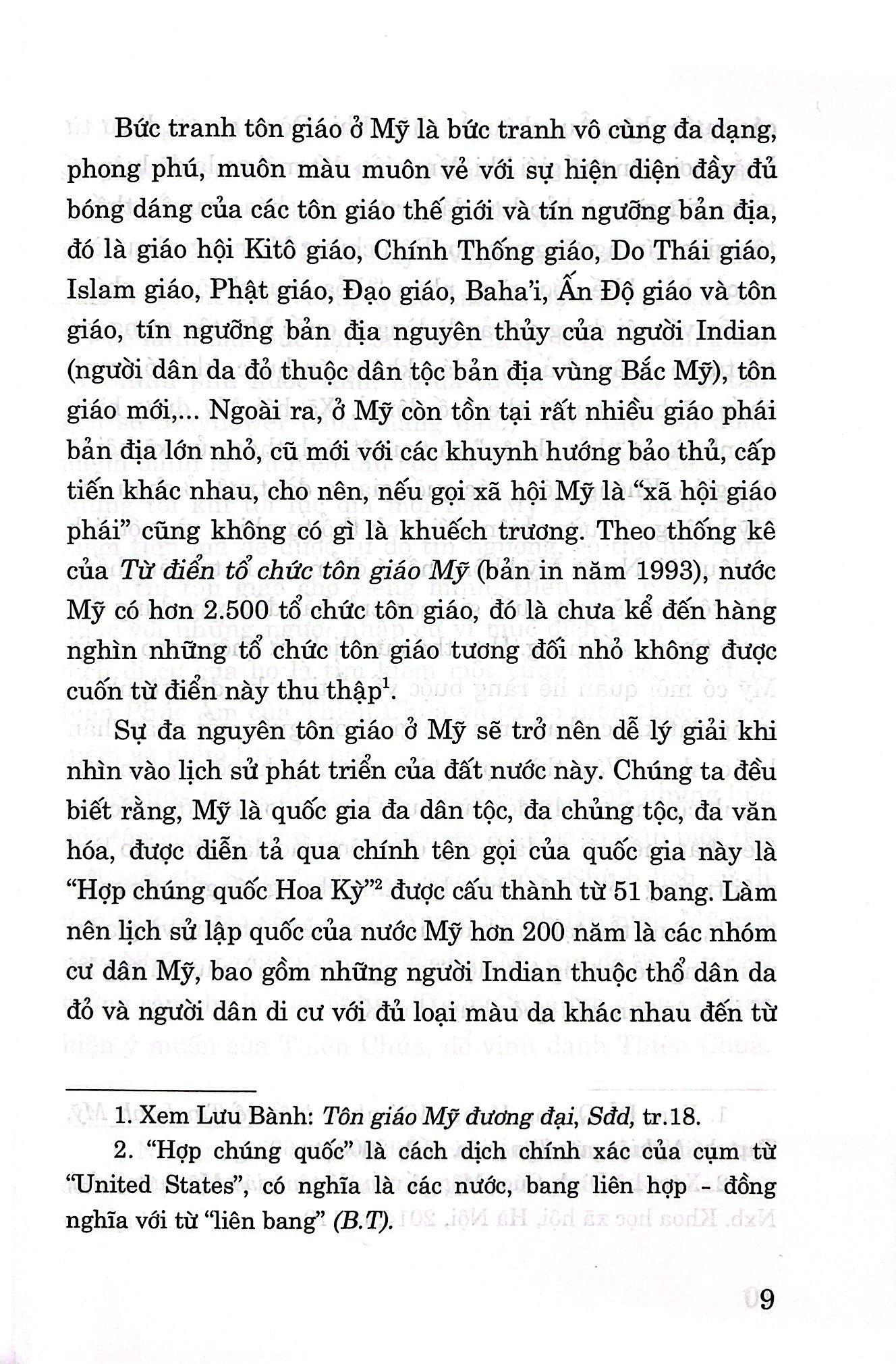 "Tôn giáo và chính sách tôn giáo là những vấn đề vô cùng phức tạp ở các quốc gia, đặc biệt ở Mỹ. Nếu ta hỏi một người Mỹ rằng họ có tự do tôn giáo hay không, trong đa số trường hợp câu trả lời sẽ là “có”. Nhưng rất có thể, hiếm hoi, ta sẽ nhận được câu trả lời khác hoặc thậm chí là ngược lại. Điều này phản ánh đúng tình hình đời sống tôn giáo của M.ỹ.