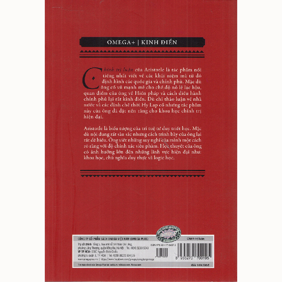 Cộng Hòa (Tái Bản 2018) Cuốn sách được xem là cột mốc lớn của triết học phương Tây. Tác phẩm được trình bày dưới dạng đối thoại giữa Plato và những người khác. Mặc