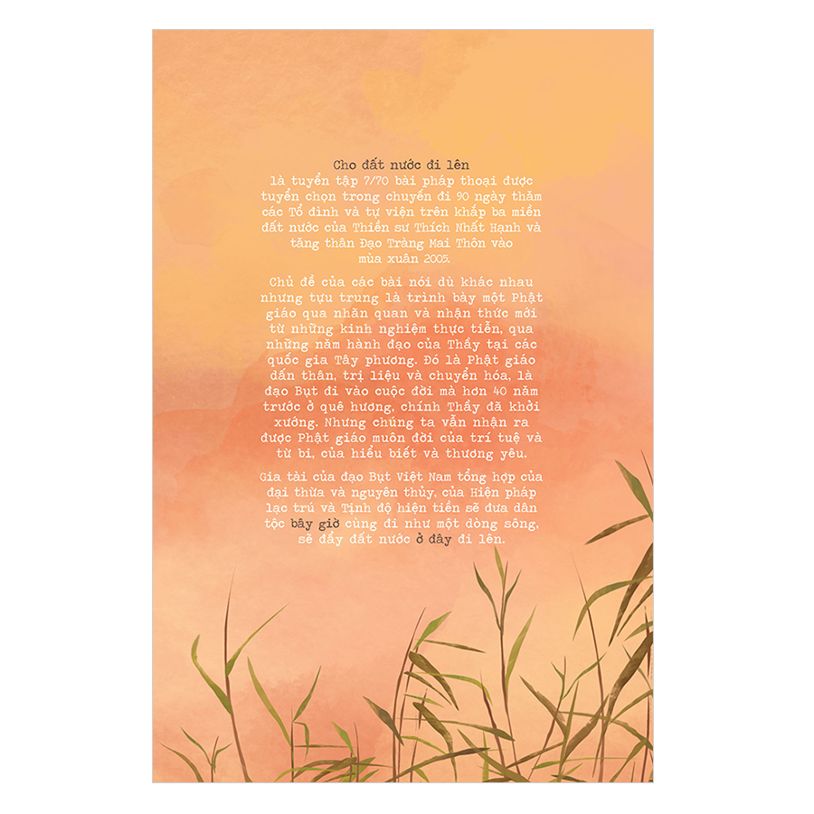 Cho Đất Nước Đi Lên là tuyển tập 7/70 bài pháp thoại được tuyển chọn trong chuyến đi 90 ngày thăm các Tổ đình và tự viện trên khắp ba miền đất nước của Thiền sư Thích Nhất Hạnh và tăng thân Đạo Tràng Mai Thôn vào mùa xuân 2005.
