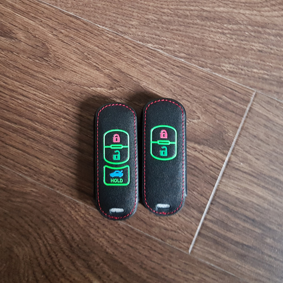 Mua tại TiktokCho xe Mazda, bao da chìa khóa 3 nút dạ quang kiêm móc khóa chất liệu da, Inox MIHOCO Mazda 3N