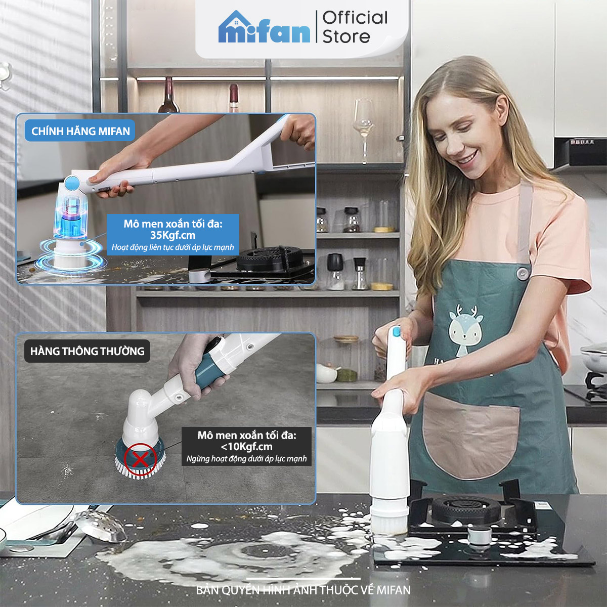 Bàn Chải Cọ Điện Đa Năng 7 Trong 1 Mifan C3 - Chà rửa cực mạnh - Công suất 84W, Chống nước IPX7, Pin sạc 2000mAh, Kèm 7 đầu chổi - Vệ sinh bếp, phòng tắm, sàn, tường, cửa kính