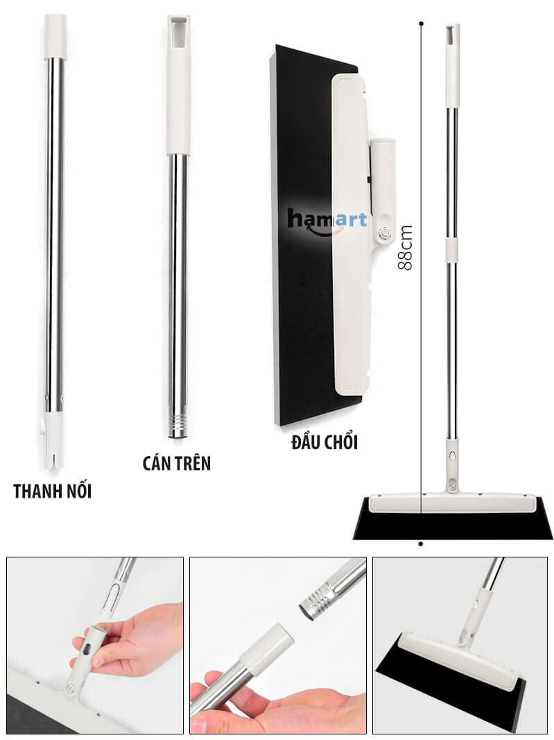 - Chiều dài chổi: 88 cm (2 cán nối có thể tháo rời)