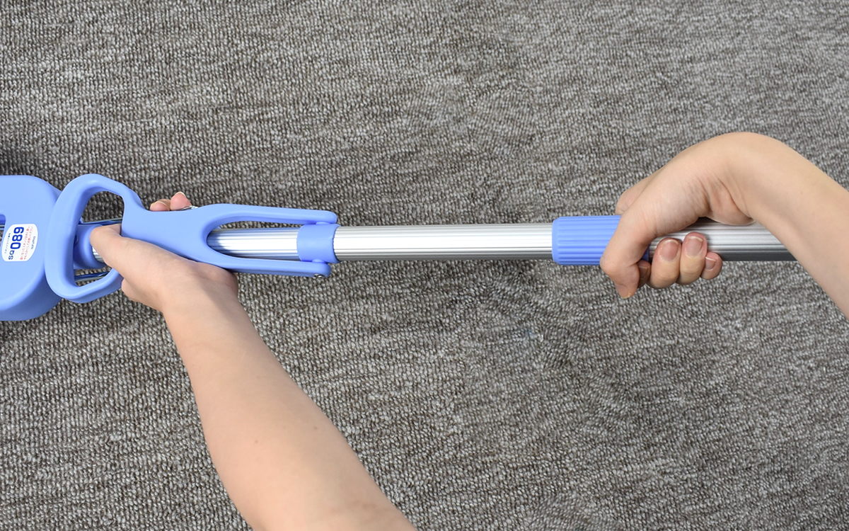 Điều chỉnh độ dài của tay cầm: Khi điều chỉnh độ dài của tay cầm, hãy giữ nó như trong hình minh họa và xoay ống này theo hướng mũi tên để nới lỏng và trượt nó. Vào vị trí có độ dài yêu thích, xoay ống theo chiều ngược lại thì dừng lại. Nếu tay cầm bị lỏng trong quá trình sử dụng, hãy siết chặt lại. Nó không mở rộng hoặc co lại ngay cả khi nắp được xoay