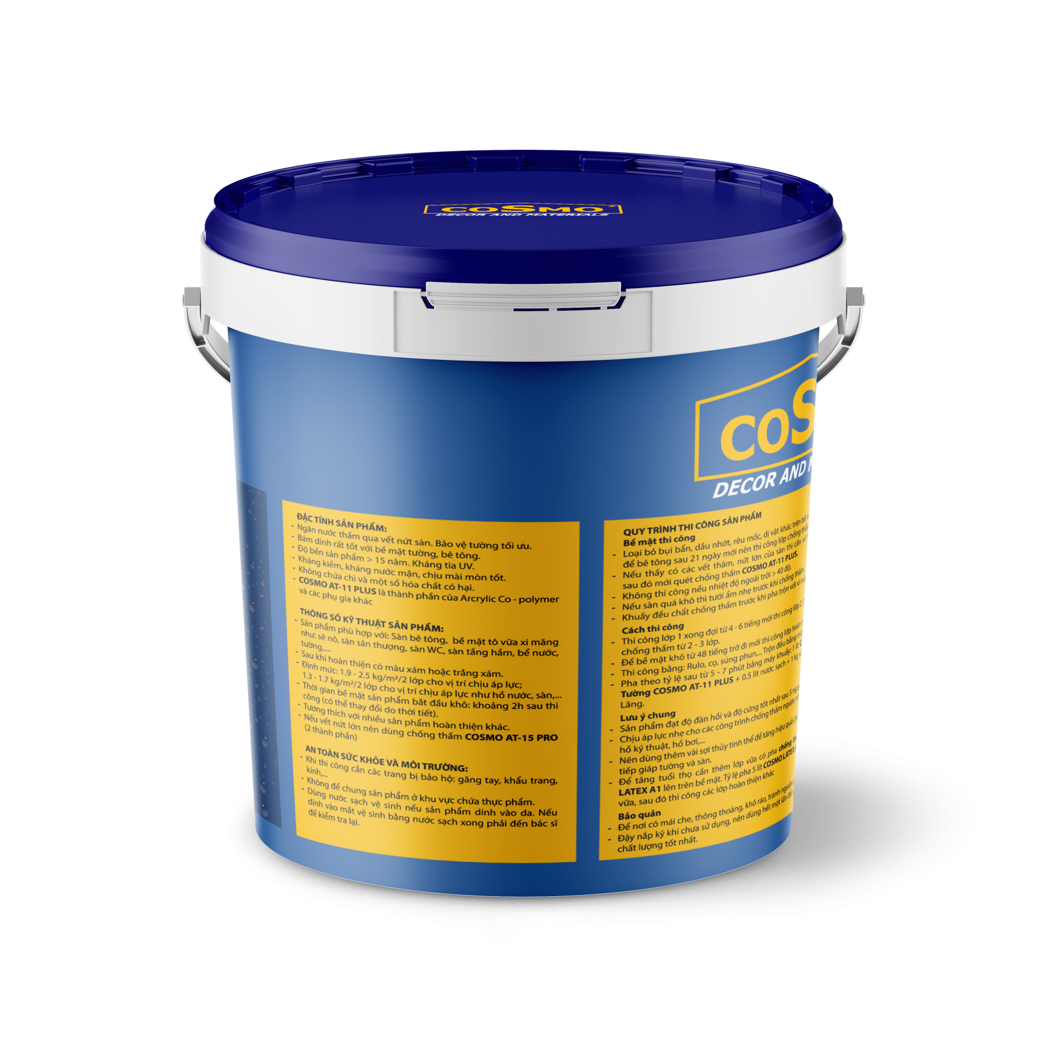 COSMO đang phát triển với nhiều dòng sản phẩm đa dạng, đáp ứng nhu cầu về các sản phẩm chống thấm chuyên dụng được hãng COSMO nghiên cứu và phát triển, đã sản xuất ra rất nhiều dòng sản phẩm chống thấm chất lượng mà giá thành lại tương đối ổn định cũng như phù hợp với thị phần của Việt Nam. Giới thiệu xô chống thấm sàn COSMO AT-11 PLUS: Chất chống thấm sàn COSMO AT-11 plus là sản phẩm chất lượng cao của hãng COSMO chuyên dùng để chống thấm có tác dụng chống thấm nước hiệu quả cho rất nhiều công trình. ĐẶC TÍNH SẢN PHẨM: