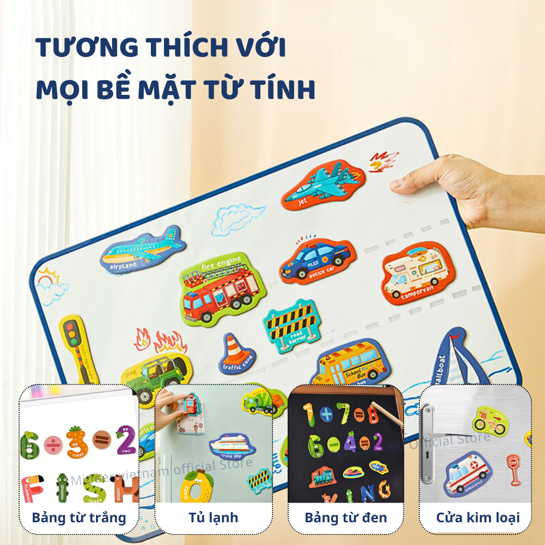 - Bao gồm: Bộ nam châm chữ số, bộ nam châm chữ cái Lưu ý: