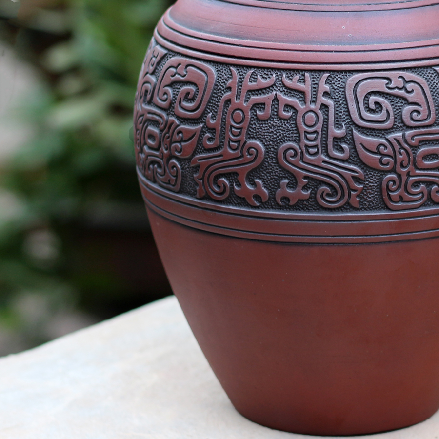 - Lần đầu tiên hình ảnh trống đồng được tái hiện trên chiếc chum sành độc đáo. - Họa tiết đắp nổi tỉ mỉ, công phu bởi nghệ nhân Bát Tràng. - Thiết kế đặc