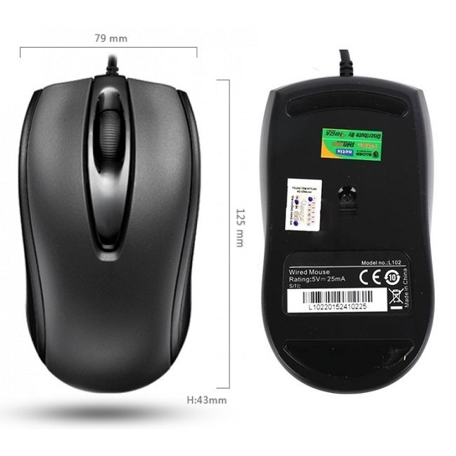 Màu sắc: Đen Chuột độ phân Giải : 1500 DPI Chuột Dây dài 1.5m (116*60*36.5mm) Phím Chữ khắc Laser chống bay chữ chất liệu : nhựa ABS , chống nước Kết nối: USB 2.0, tương