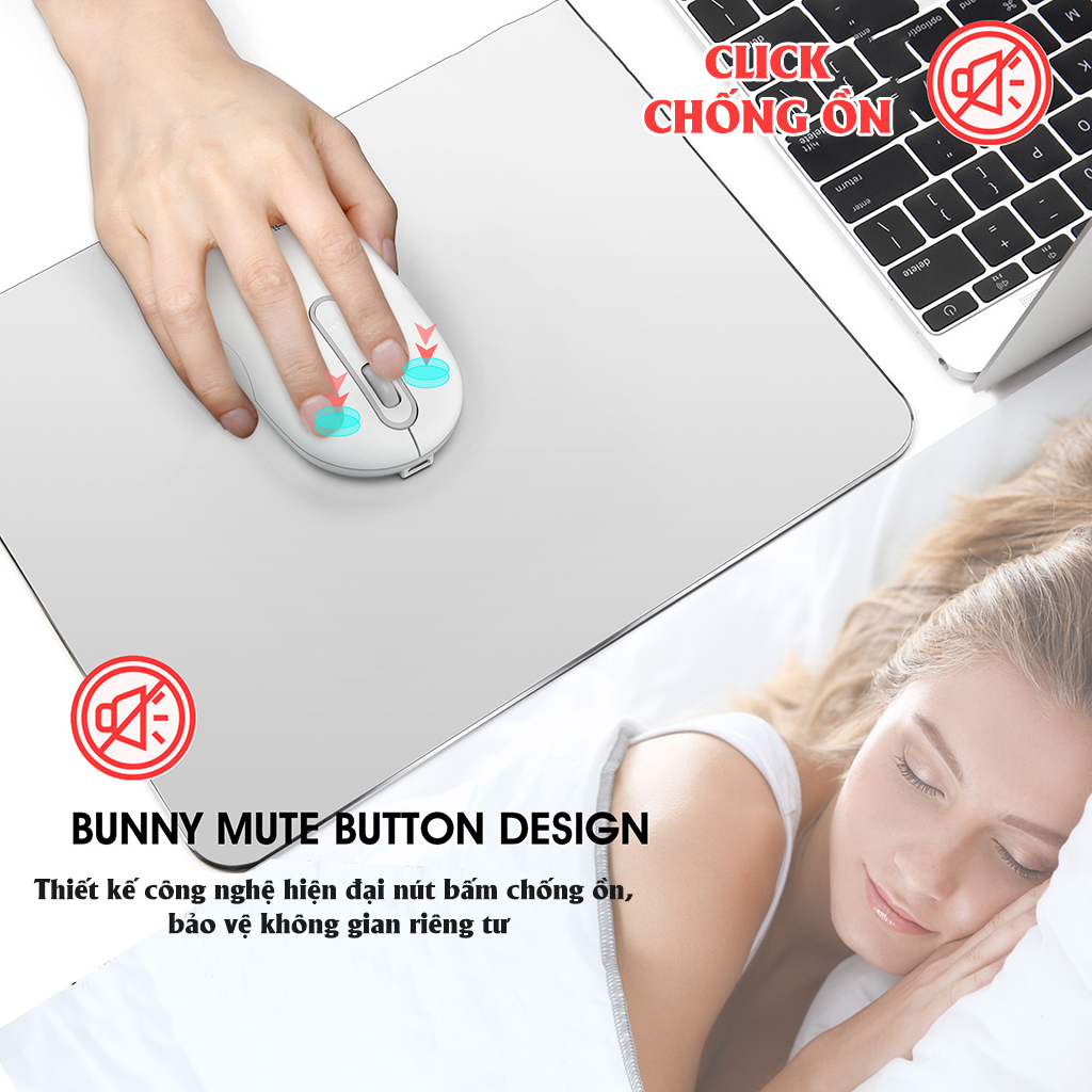 Nút bấm giảm thiểu tối đa tiếng click chuột, bảo vệ không gian yên tĩnh cho bản thân và mọi người xung quanh Thiết kế nhỏ gọn, form dáng thân thiện. Các điểm tựa tay