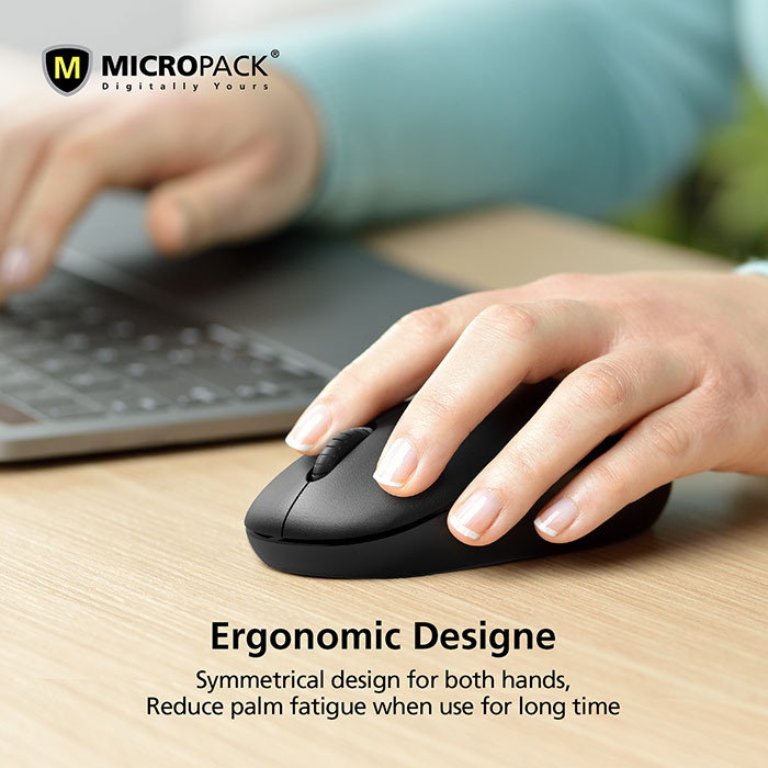 Chuột Không Dây MicroPack MP-V01W Kiểu Dáng Công Thái Học Cho Tư Thế Cầm Tay Thoải Mái Tiết Kiệm Pin 1600DPI Giải pháp công thái học hiện đại cho dân văn phòng – Chuột máy