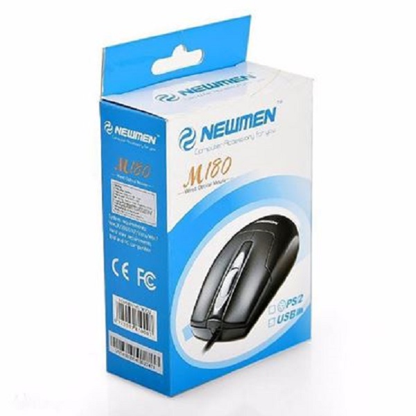 Thương hiệu Newmen Label M180 Màu sắc Đen Loại đèn LED Không Thiết kế chuột Không Kết nối Có dây Loại kết nối USB 2.0 Cảm biến Quang học DPI tối đa 1000 Số nút bấm 3 Chiều dài dây 1.5m