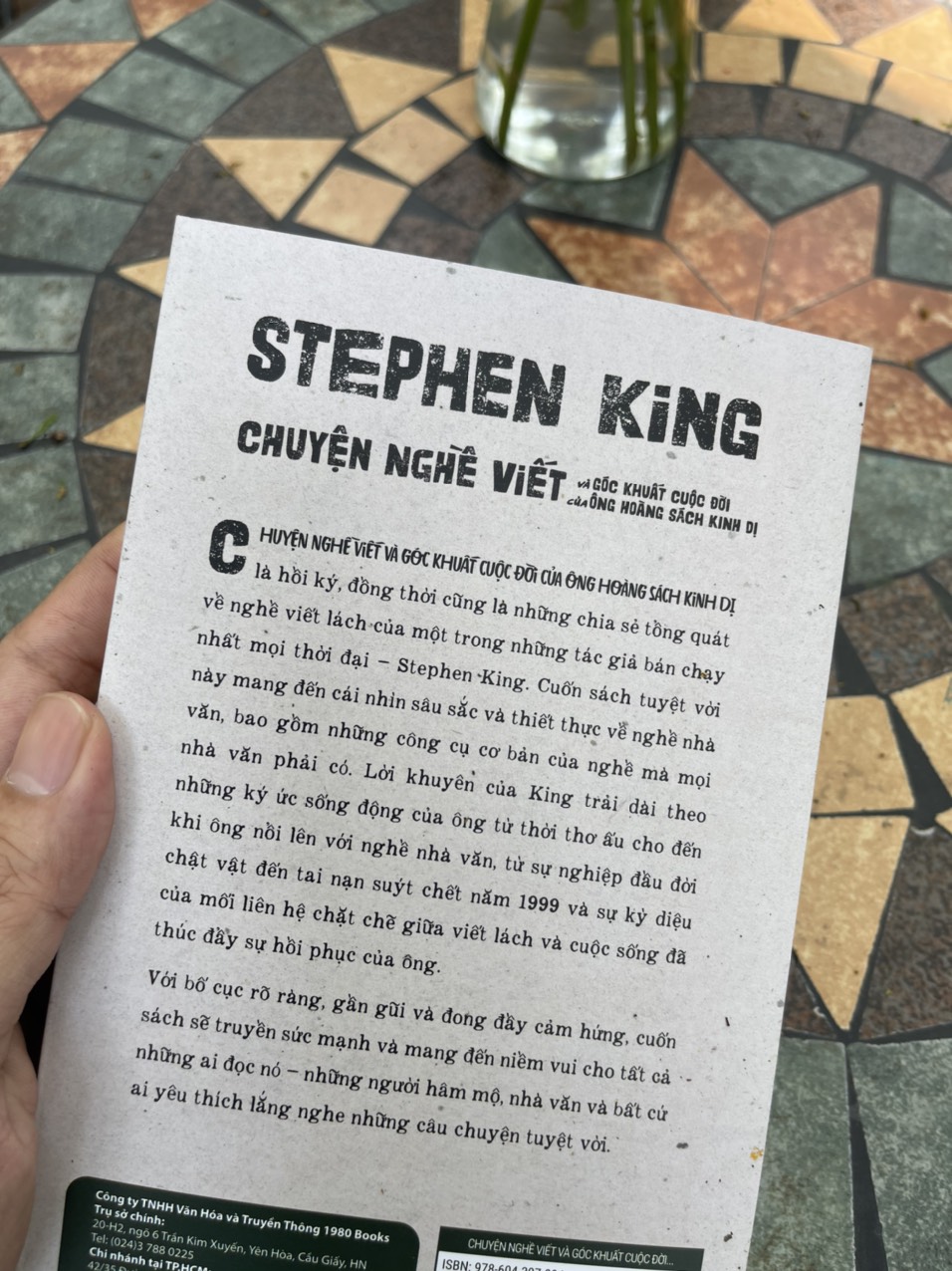 On Writing: A Memoir of the Craft là hồi ký, đồng thời cũng là những chia sẻ tổng quát về nghề viết lách của một trong những tác giả bán chạy nhất mọi thời đại – Stephen King. Cuốn sách tuyệt vời này mang đến cái nhìn sâu sắc và thiết thực về nghề nhà văn, bao gồm những công cụ cơ bản của nghề mà mọi nhà văn phải có, cũng như 6 nguyên tắc quan trọng để tạo nên một BEST SELLER. Lời khuyên của King trải dài theo những ký ức sống động của ông từ thời thơ ấu cho đến khi ông nổi lên với nghề nhà văn, từ sự nghiệp đầu đời chật vật đến tai nạn suýt chết năm 1999 và sự kỳ diệu của mối liên hệ chặt chẽ giữa viết lách và cuộc sống đã thúc đẩy sự hồi phục của ông. Với bố cục rõ ràng, gần gũi và đong đầy cảm hứng, cuốn sách sẽ truyền sức mạnh và mang đến niềm vui cho tất cả những ai đọc nó – những người hâm mộ, nhà văn và bất cứ ai yêu thích lắng nghe những câu chuyện tuyệt vời.