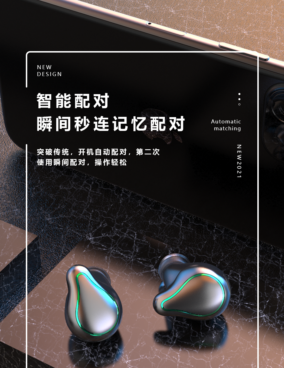 ✨CINCATDY Tai Nghe Bluetooth Earbuds Single Side Wireless Earphone Handsfree Stereo Headset 2021 TWS Earbud with Microphone Waterproof Touch Earbud