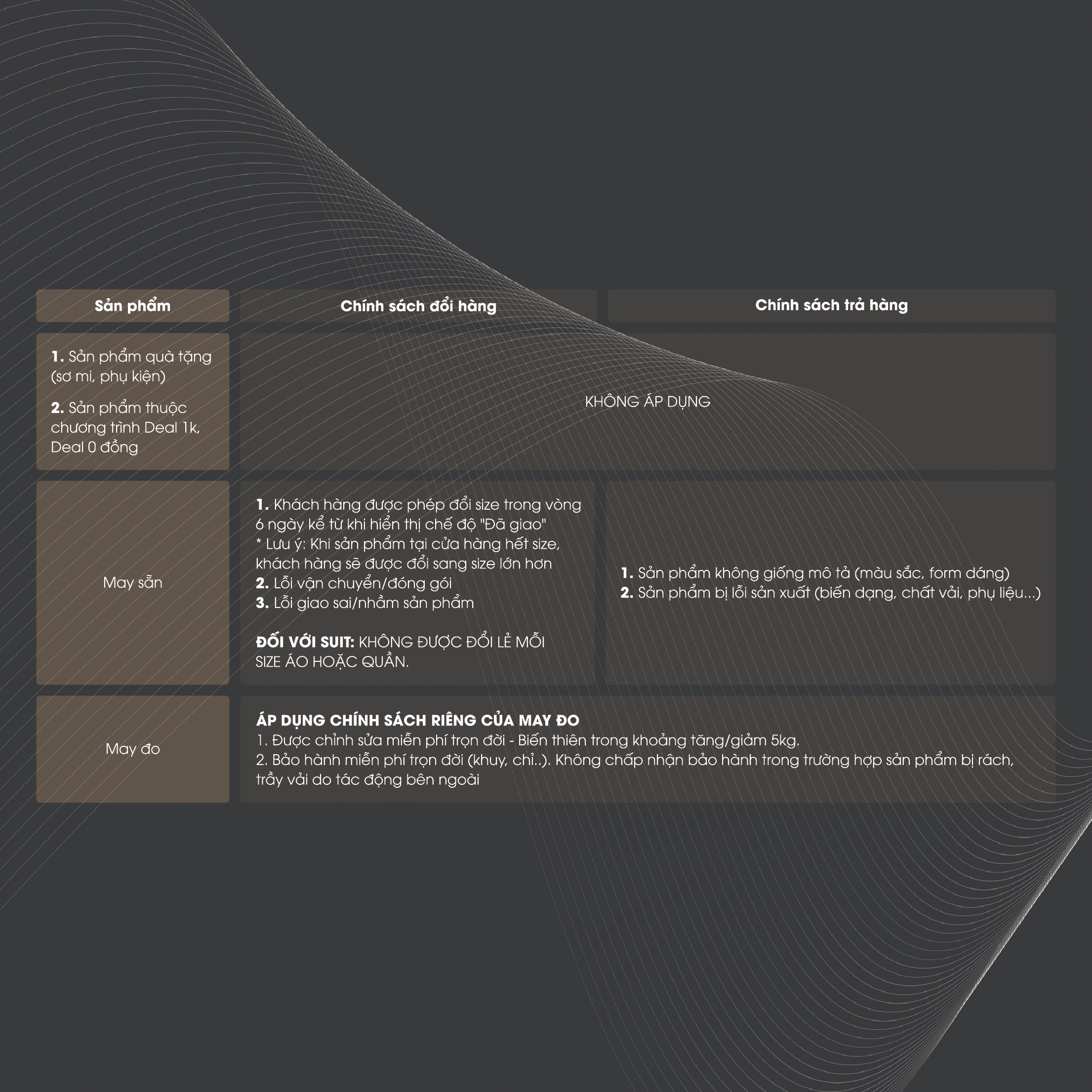 - Chất liệu: Vải sợi len lông cừu (Wool) - Hãng vải Nobility (nhập khẩu từ Ý)