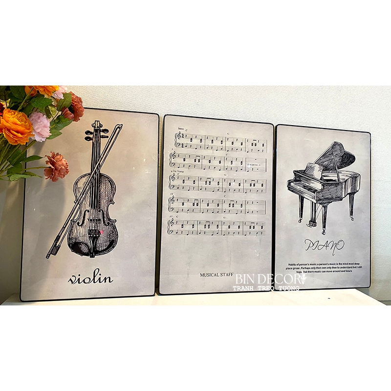 ✨(CÓ ẢNH THẬT) Tranh treo tường cây đàn trang trí decor âm nhạc 16 kèm đinh treo