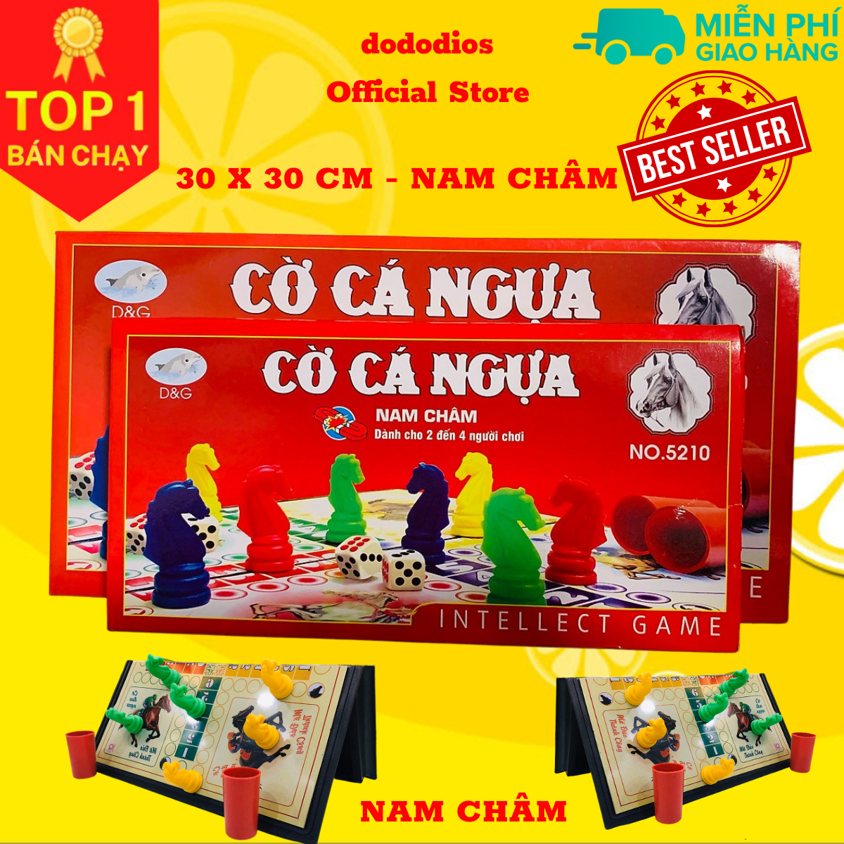 Mua tại TiktokCỡ Đại: 28x28cm (Ký hiệu 30x30cm) Cỡ Cực Đại: 38x38cm (Hàng cải tiến) Bộ Cờ Cá Ngựa dododios Bộ Cờ Cá Ngựa Cao Cấp Kích Thước 28x28 Hàng Chính Hãng dododios Cờ cá ngựa hay còn gọi là Cờ đua ngựa là một trò chơi giải trí. Nguyên tắc chơi: Là di chuyển quân cờ của mình đủ một vòng (ngược chiều kim đồng hồ) quanh bàn cờ để về đến đích (tức về chuồng). Khả năng di chuyển nhanh hay chậm đều phụ thuộc vào lượt tung xúc xắc của mình. Người nào có đủ bốn quân cờ về đến đích đầu tiên và đã xếp đúng vào các ô số 6, 5, 4 và 3 trong chuồng là người chiến thắng. Những người còn lại có thể chơi tiếp để tranh vị trí hai và ba. Những ưu điểm vượt trội của Bộ cờ cá ngựa nam châm dododios: