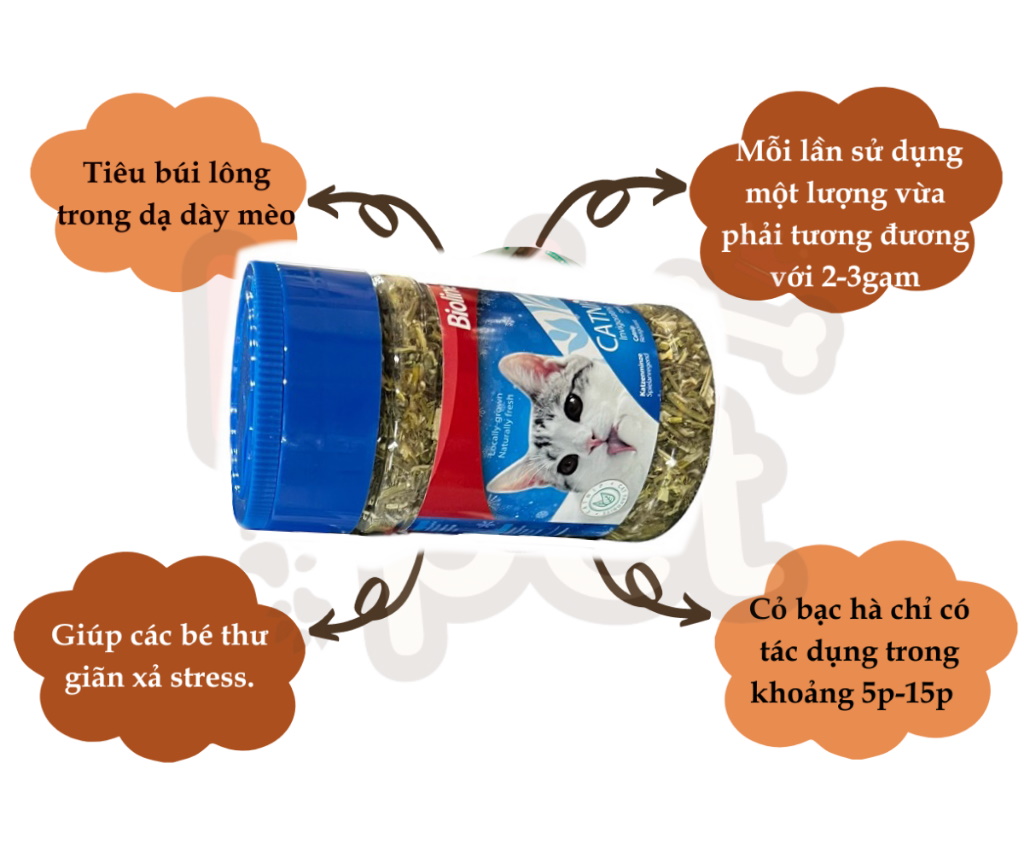 • Giúp thú cưng nôn ra được các búi lông trong ruột (các boss thường xuyên liếm lông mà).