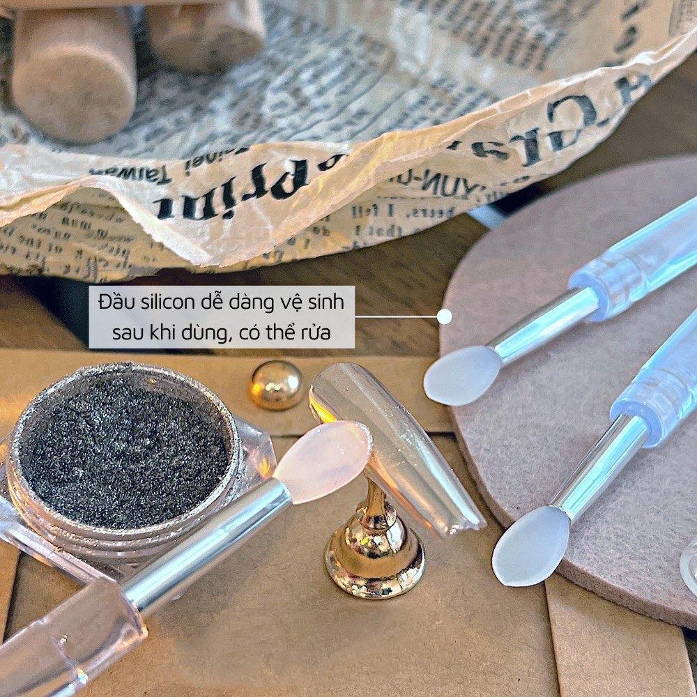 - Thiết kế thông minh: Đầu cọ được làm bằng silicon giúp dễ dàng hơn khi lấy bột và khi chà bột sẽ được bắt dính nhiều hơn lên móng tay trực tiếp khi làm.